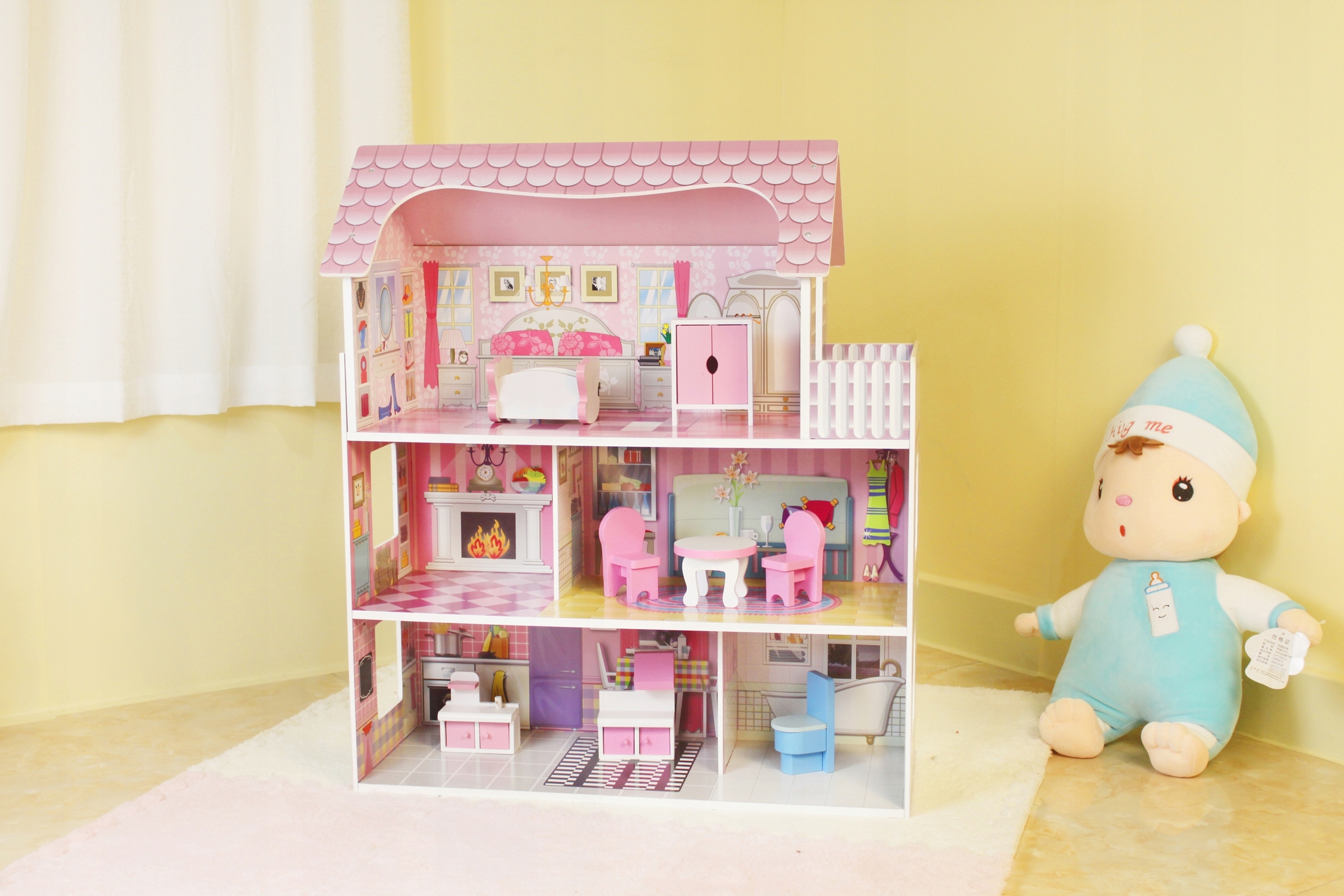 Чудовий 3-поверховий дерев'яний ляльковий будиночок з меблями і терасою був створений з великою увагою до кожної деталі. Має 5 великих і просторих кімнат і вихід на терасу. Дерев'яні меблі та аксесуари рухливі і їх можна переміщати в будь-яке місце залежно від фантазії дитини. Будинок має три незалежні рівні, загалом 5 кімнат + тераса, і кожна з них має різний стиль (спальня, їдальня, кухня, ванна кімната, вітальня). Це неодмінно порадує вашу дитину та забезпечить довгі години чудового задоволення. Будинок абсолютно безпечний і стабільний. Ідеально вписується в будь-який інтер'єр.
