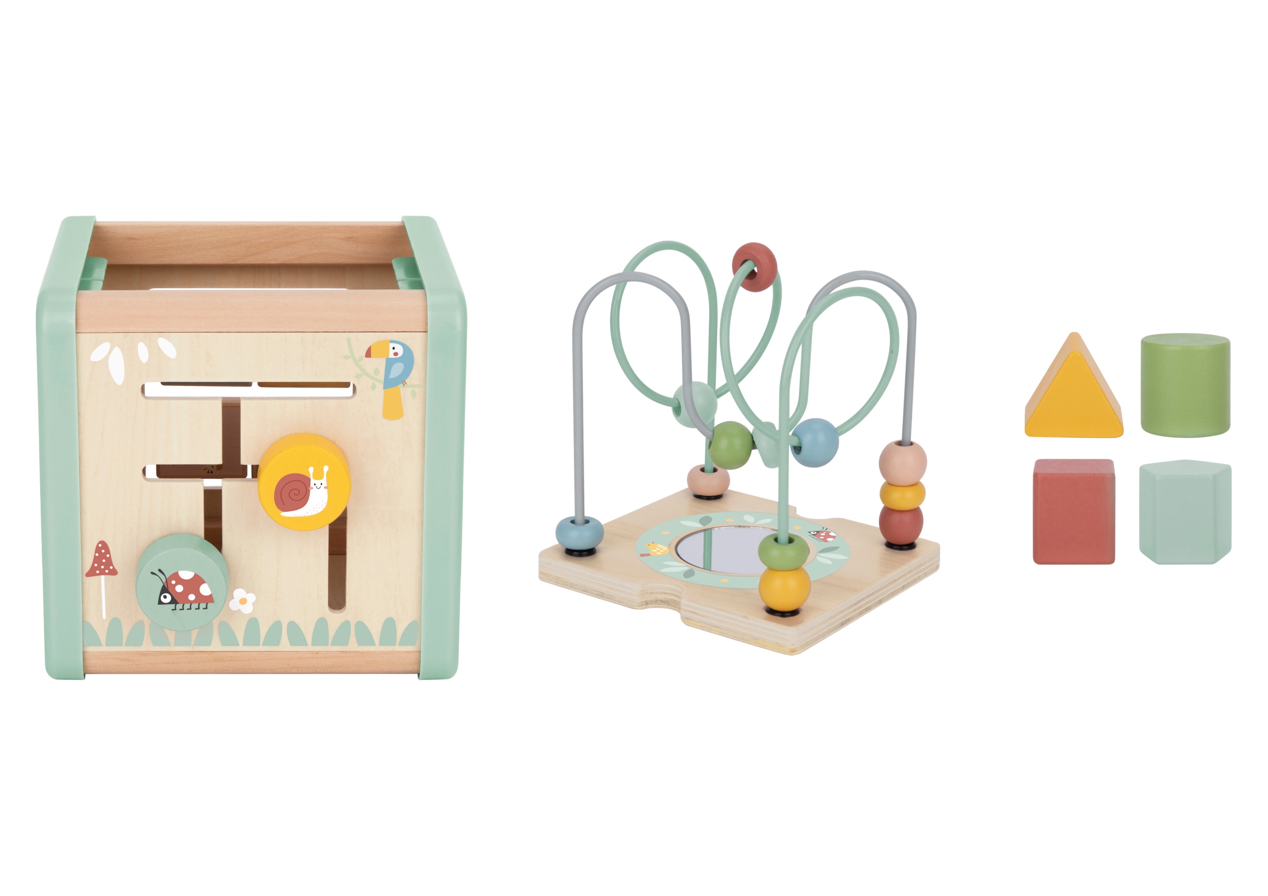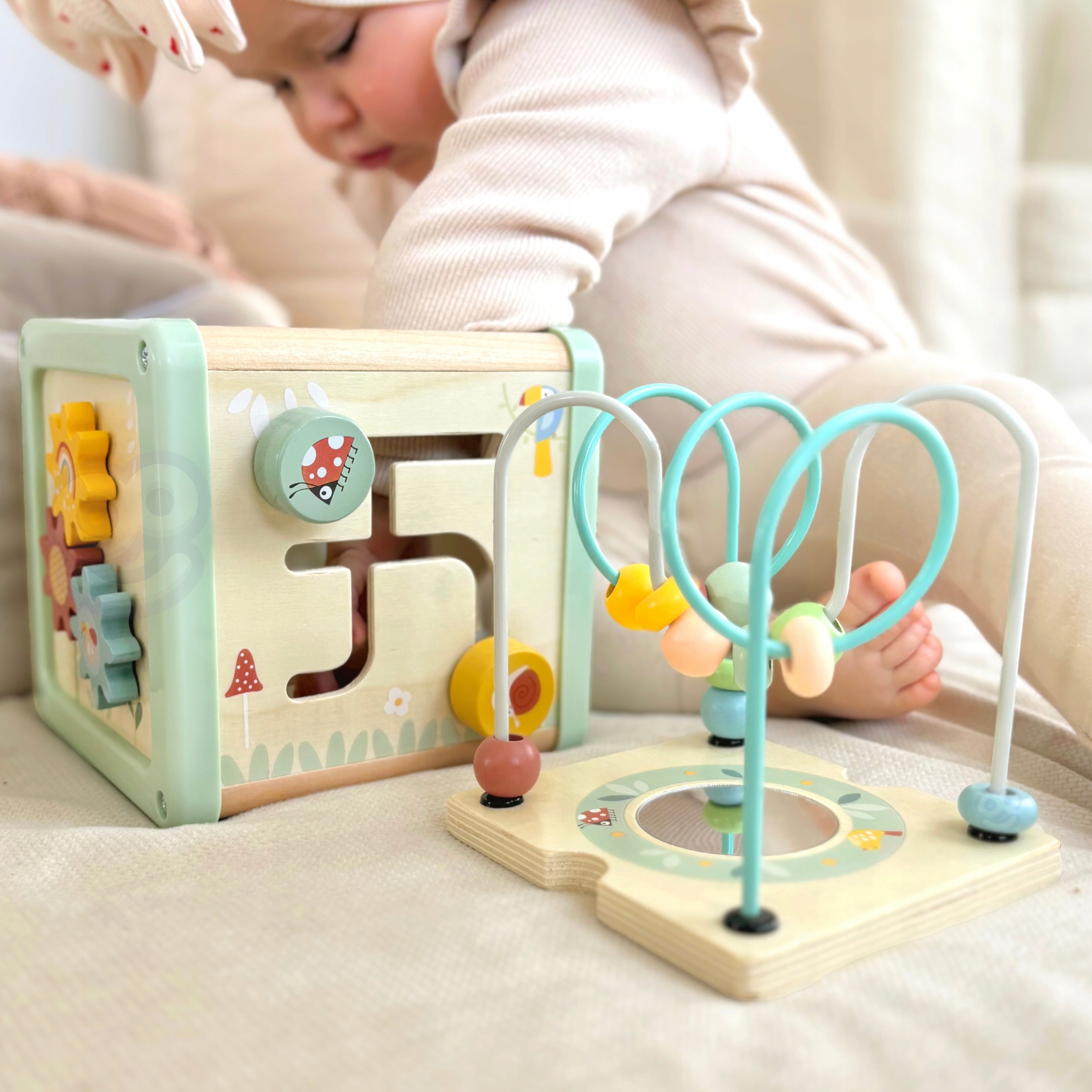 Дерев’яний Куб активності від бренду Woopie Green - це фантастичний навчальний набір, який підбадьорить вашого малюка та допоможе вивчити базові навички. Завдяки багатостороннім панелям , які пропонують різні ігри, дитина зможе відкрити передачі, блоки, сортери, повзунки, а також лабіринт з намистинами. Все це в делікатних пастельних кольорах , які привертають увагу та заохочують задоволення.