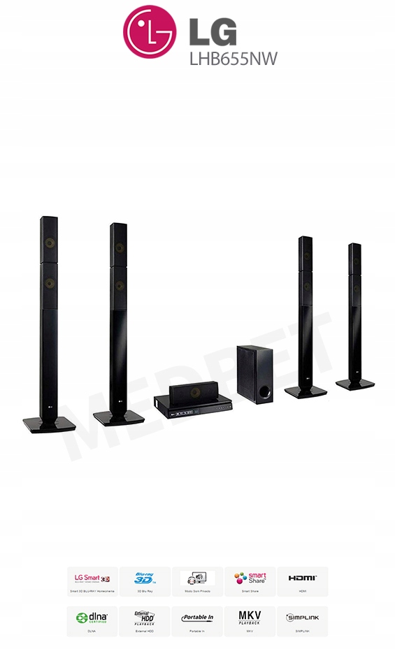 Модель LHA755 — це повністю обладнаний мультимедійний домашній кінотеатр. Він пропонує роз’єм HDMI 3D, високоякісне аудіо/відео з 5.1-канальною акустичною системою. Абсолютно новий пульт дистанційного керування та екранне меню роблять цю систему надзвичайно простою у використанні.