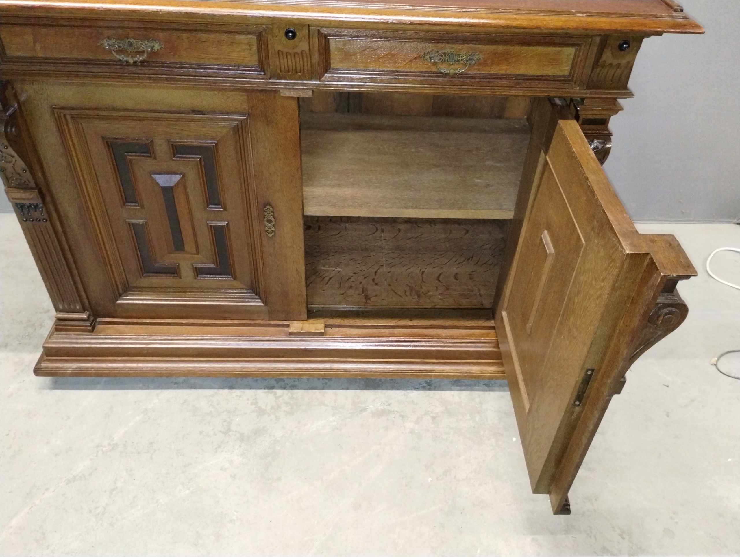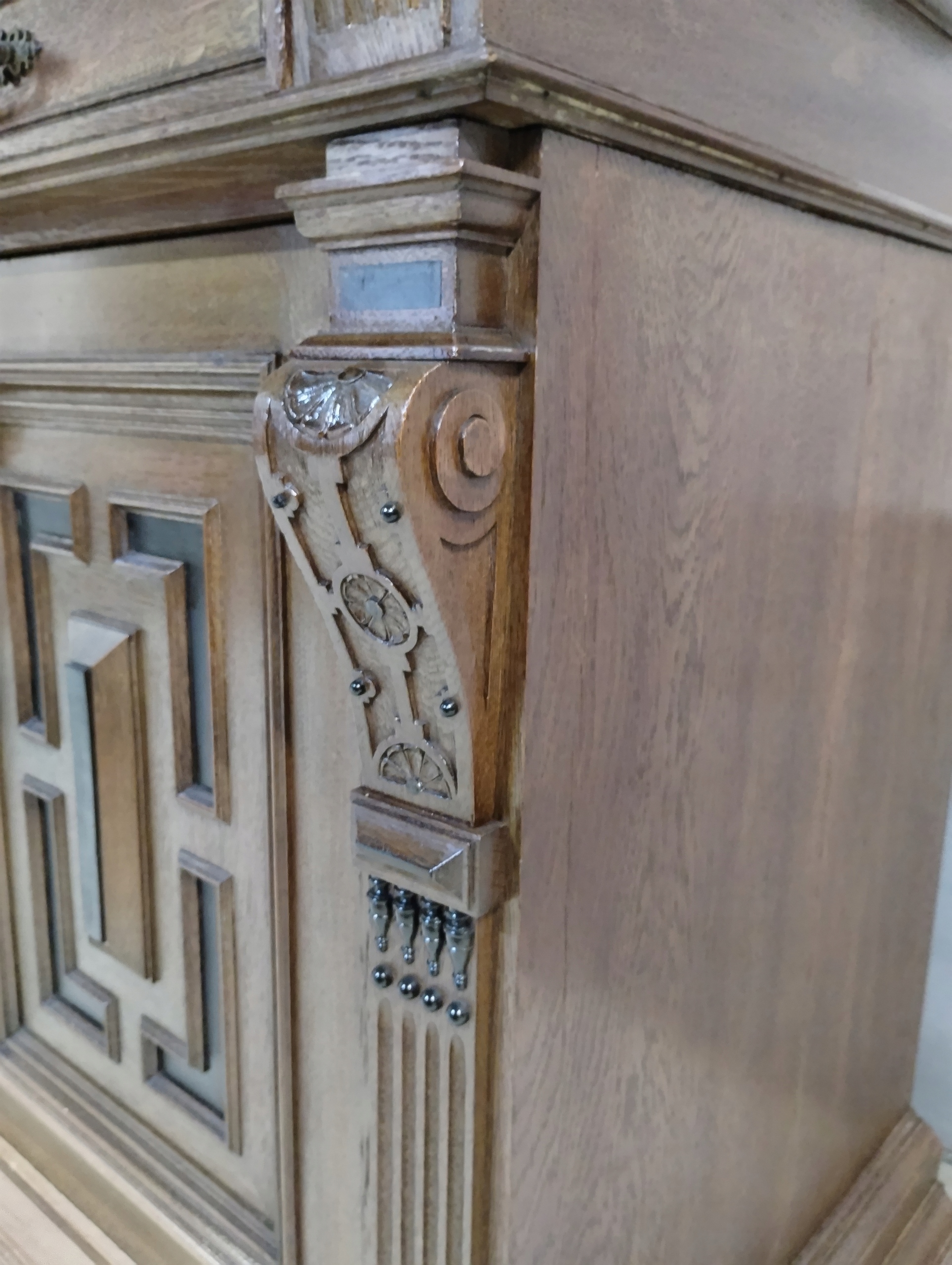 Великий еклектичний дубовий комод 19 століття з великою кількістю різьби по дереву