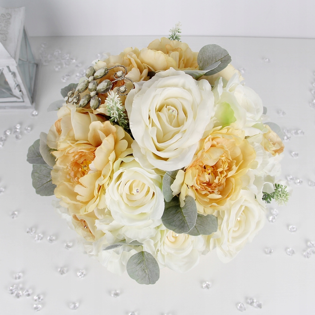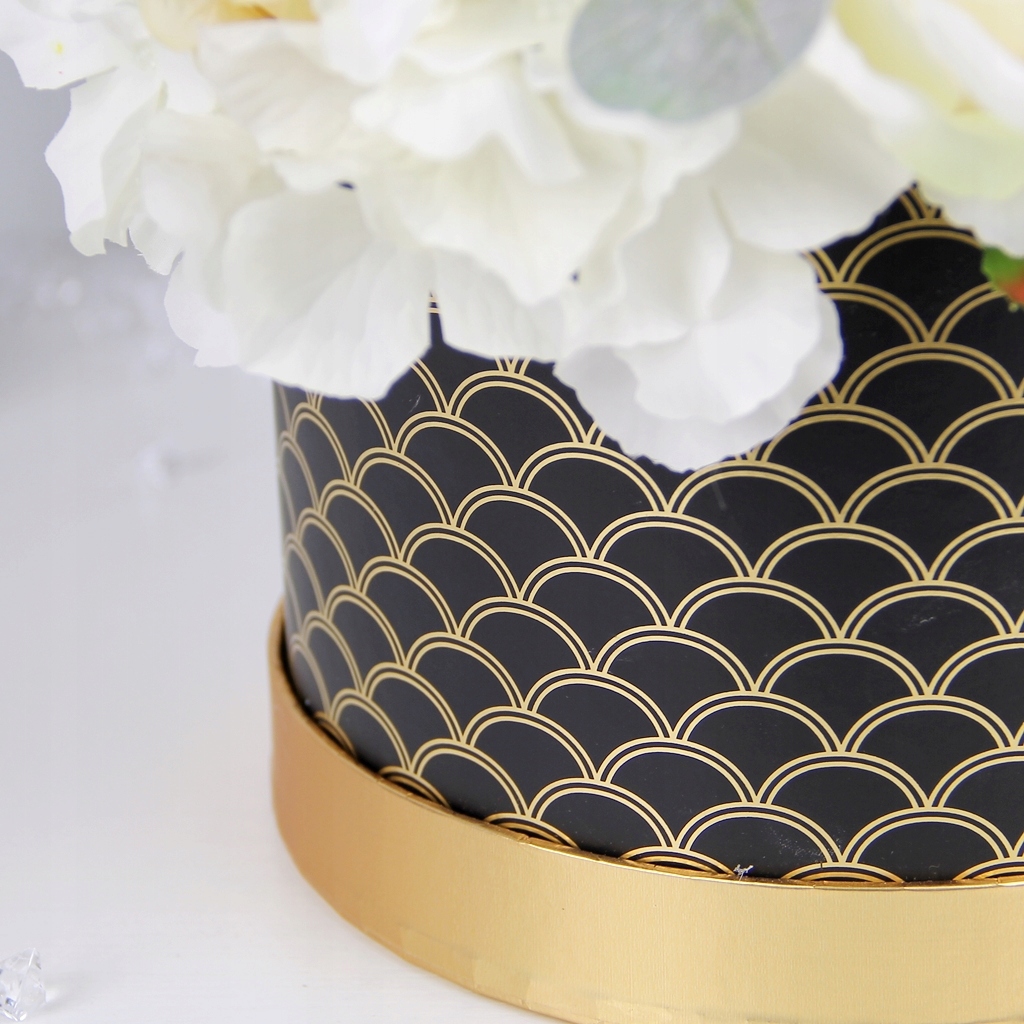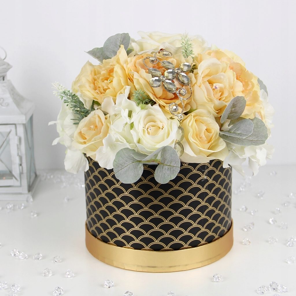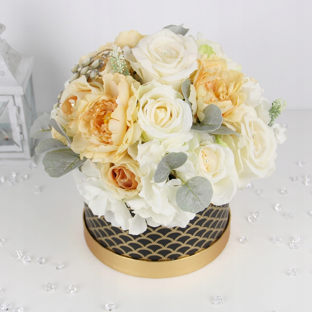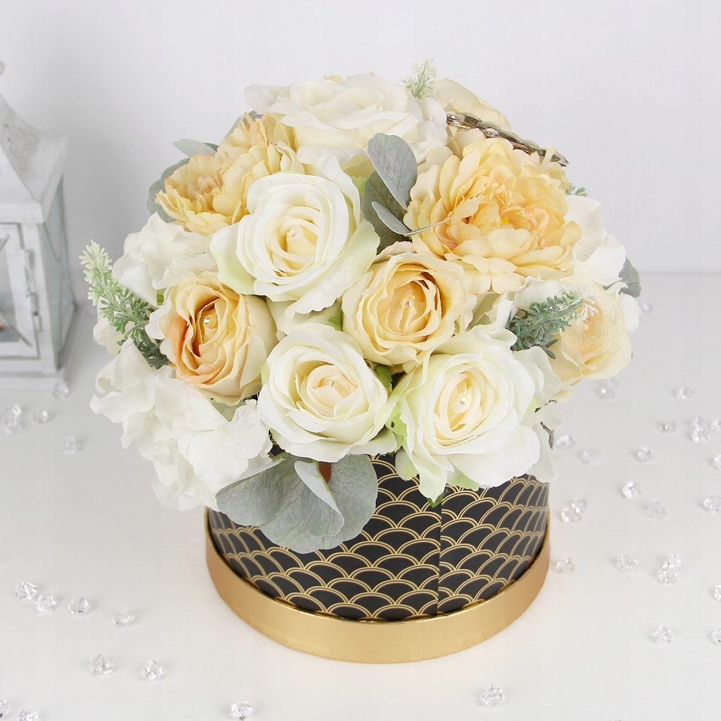 ВЕЛИКИЙ ЕЛЕГАНТНИЙ букет BLACK AND GOLD BOX мікс квітів кремового кольору з кристалами