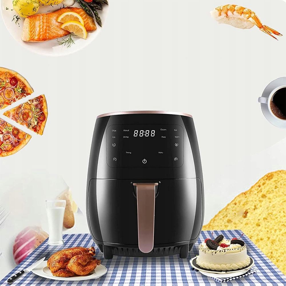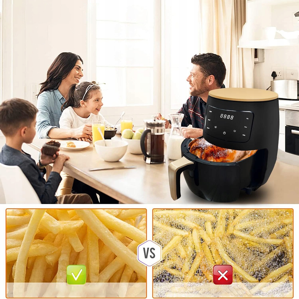 wreszcie możesz przygotowac duże ilości jedzenia na raz ми frytownicy na gorące powietrze. Завдяки величезному кулінарному простору з 6 літрів, ви навіть можете спекти всю курку! Завдяки цьому фритюрниця ідеально підходить для сімей. У маленьких домогосподарствах фритюрниця може навіть служити багатофункціональною духовкою замість традиційної духовки. Завдяки великому попередньому програмуванню та простому операції, він здатний виконати завдання.