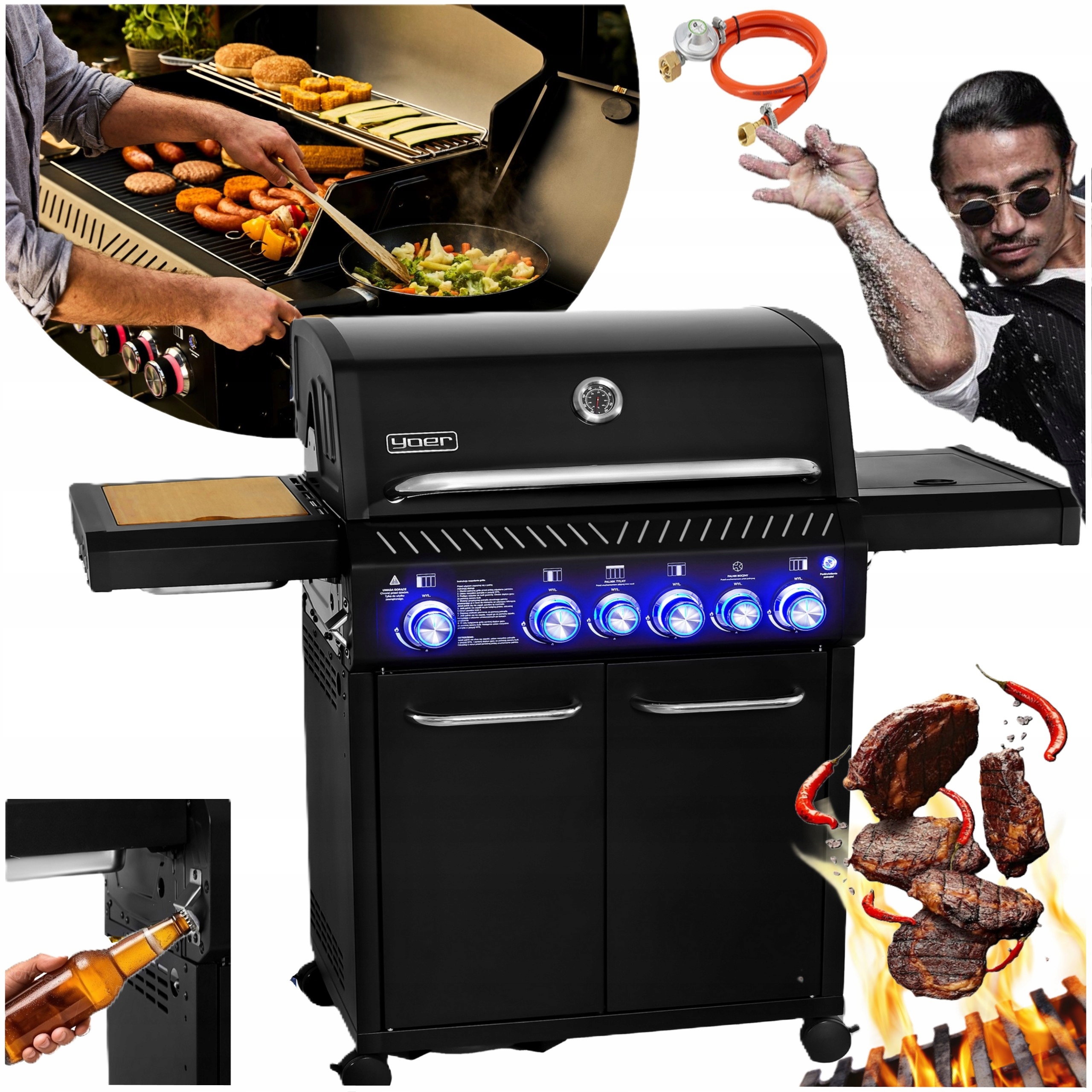 ВЕЛИКИЙ ГАЗОВИЙ ГРИЛЬ МІЦНА НЕРЖАВІЮЧА СТАЛЬ 21,15кВТ ЧАВУННА РЕШІТКА 4+2 відкривачка
