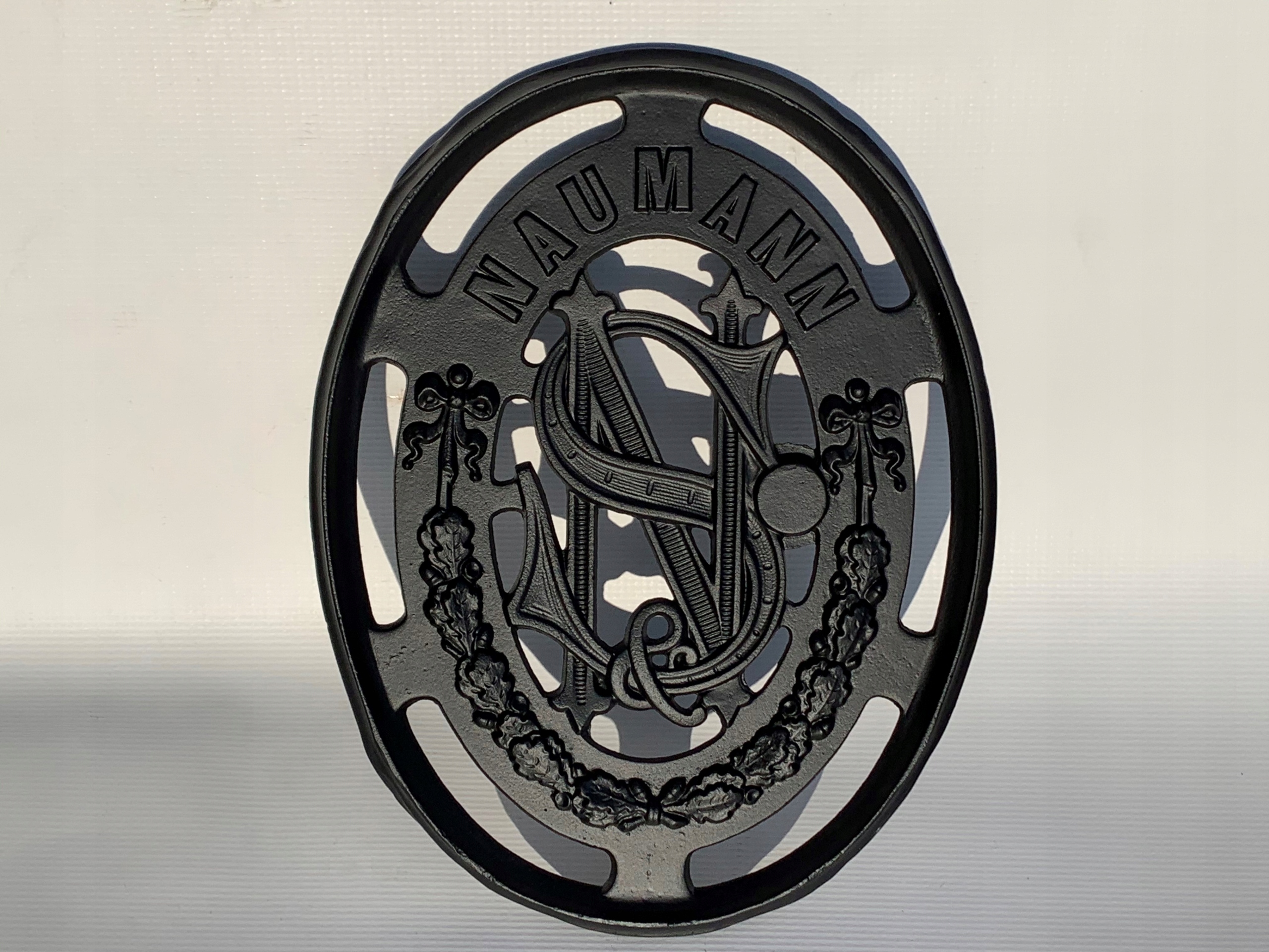 Предметом продажу є стара емблема NAUMANN. Оригінальна річ, виготовлена з чавуну. Взято зі старої бази швейної машинки. Дуже гарний візерунок. Стан - після професійного ремонту, піскоструминний та пофарбований в чорний колір - як на фото. Ідеально підходить як прикраса, наприклад, для підвішування. Приблизні розміри: 31,3 см (висота) х 24,3 см (ширина). Якщо ви шукаєте щось оригінальне, цей аукціон саме для вас.