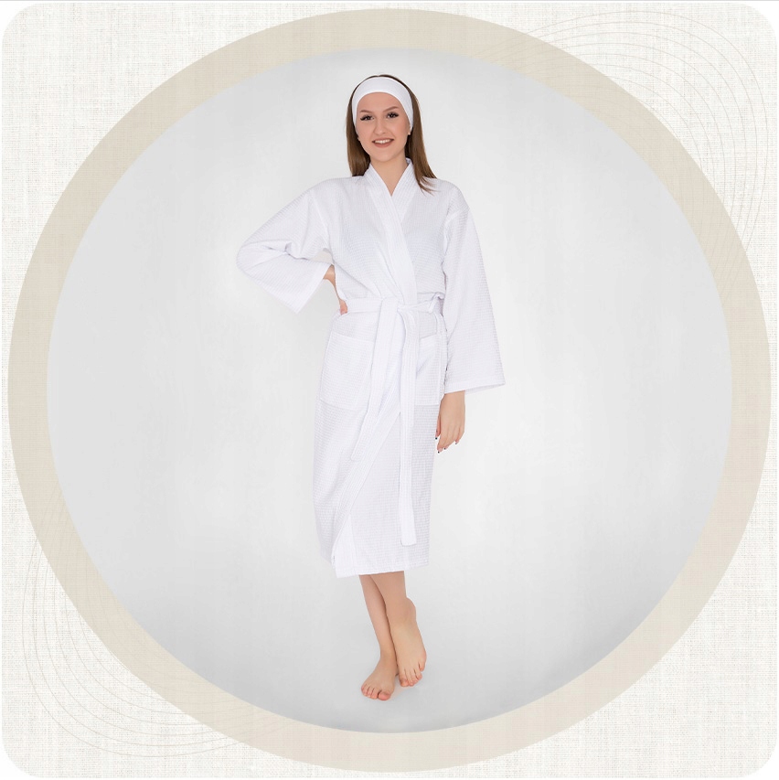 WAFFLE халат від TUVA HOME, також званий вафельним або вафельним халатом. Його незаперечні переваги - легкість, поглинаюча здатність і цікавий дизайн. Халат Вафельний особливо стане в нагоді в спекотні дні, адже його стиль кімоно, витонченість і повітропроникність допомагають підтримувати циркуляцію повітря. Щоб продовжити період інтенсивного тренування використання, ми обрали комбінацію бавовни та поліестеру, завдяки чому ми обмежили усадку халата до мінімуму.
