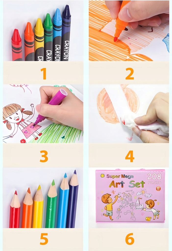 - Набір складається з 208 елементів - безліч аксесуарів зробить кожне використання художнього набору ідеальною подорожжю у світ мистецтва.< /li>
