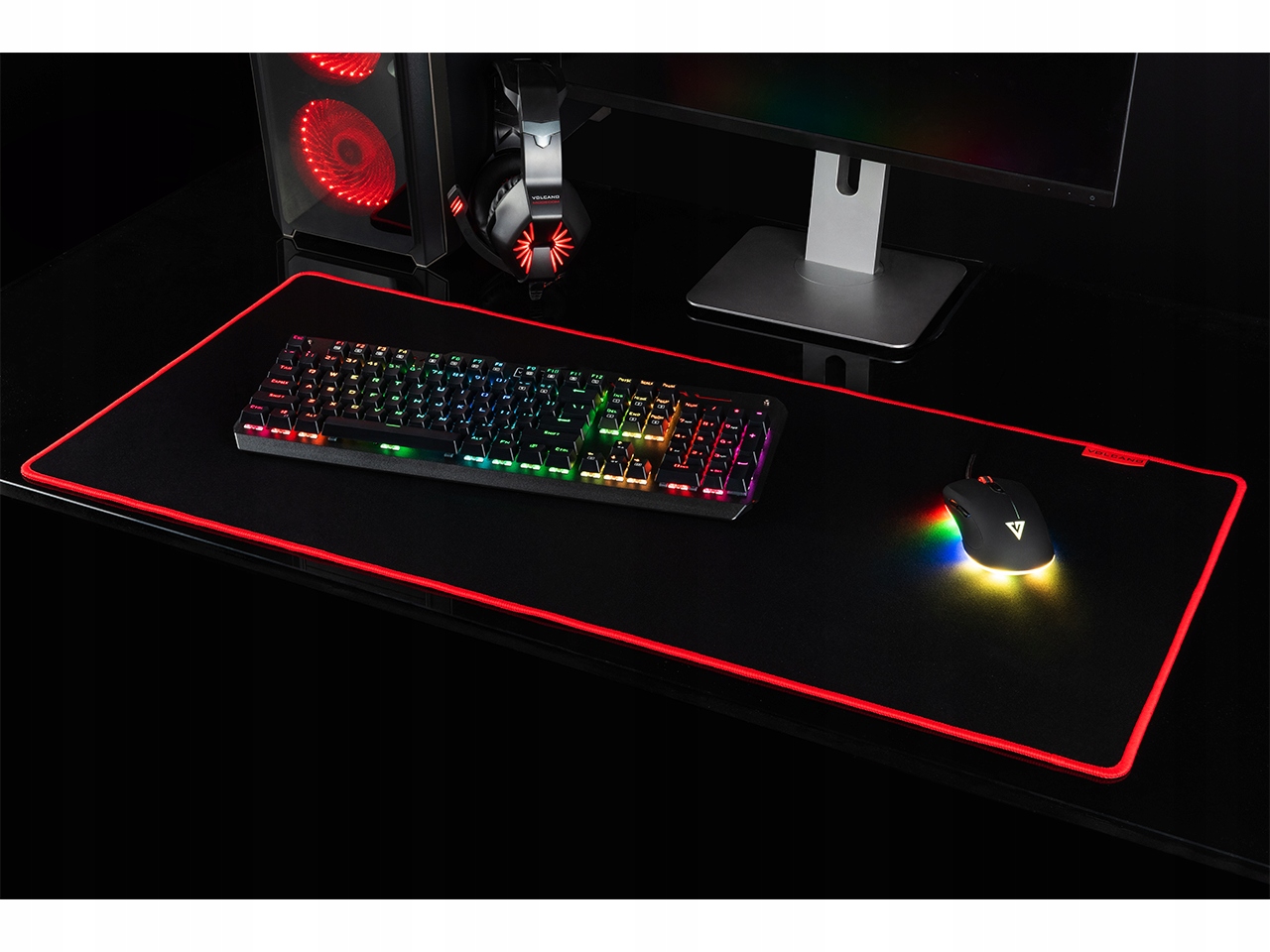 це гігантський майданчик, на поверхні якого можна розмістити всю вашу зброю. Це також забезпечить йому належну стабільність і створить основу для подальшої боротьби. Сама накладка, завдяки відповідному матеріалу основи, легко збереже своє положення навіть під час запеклої сутички. Величезні розміри 900x420x3 мм гарантують свободу і простір. Водонепроникна тканина гарантує ідеальне ковзання кожної миші, а червона окантовка захищає килимок і продовжує термін його служби. Гумова основа стабілізує накладку.