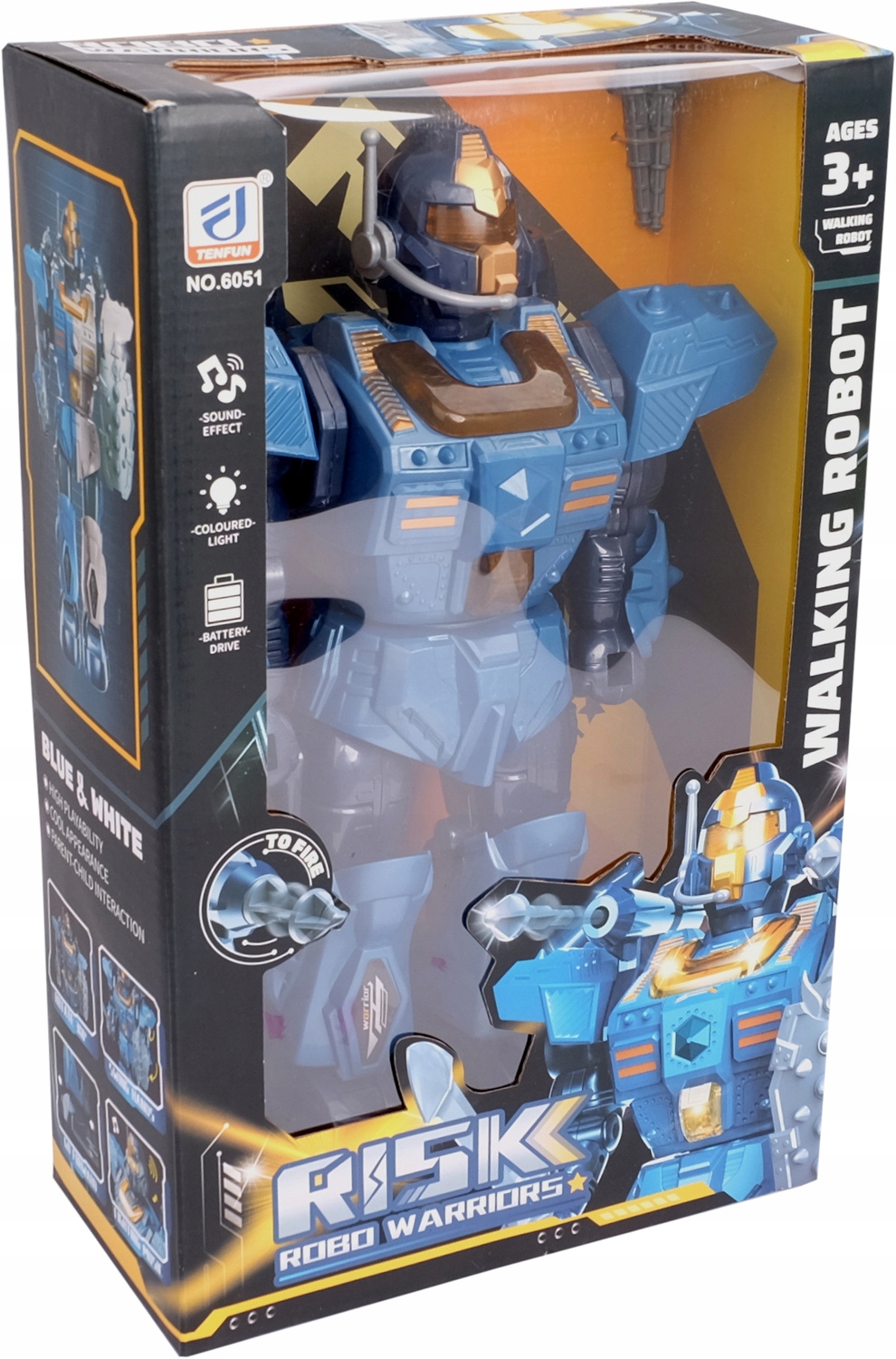 робот ризик оснащений потужними гарматами прихованими на руках. Коли він наближається до ворога, він активує свої барвисті світильники, , які починають мерехтить до різних кольорів. Потім він обертається з 360 градусами, , сигналізуючи про те, що лазерний радіус зніме. пістолет можна завантажити для стрільби іншої ракети - робот здатний знищити кожну ціль!