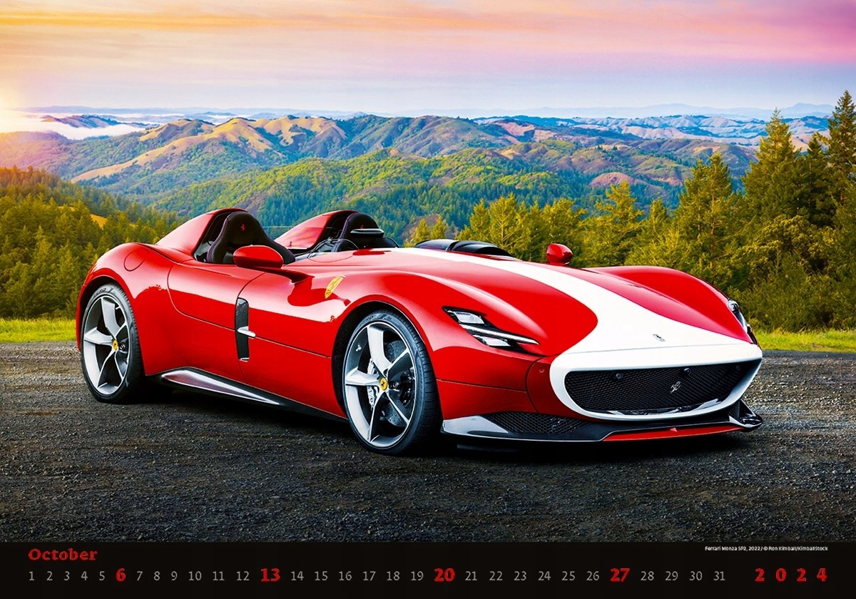 Великий формат фотографій і горизонтальний макет календаря дозволяють підкреслити стрункі силуети спортивних автомобілів. .