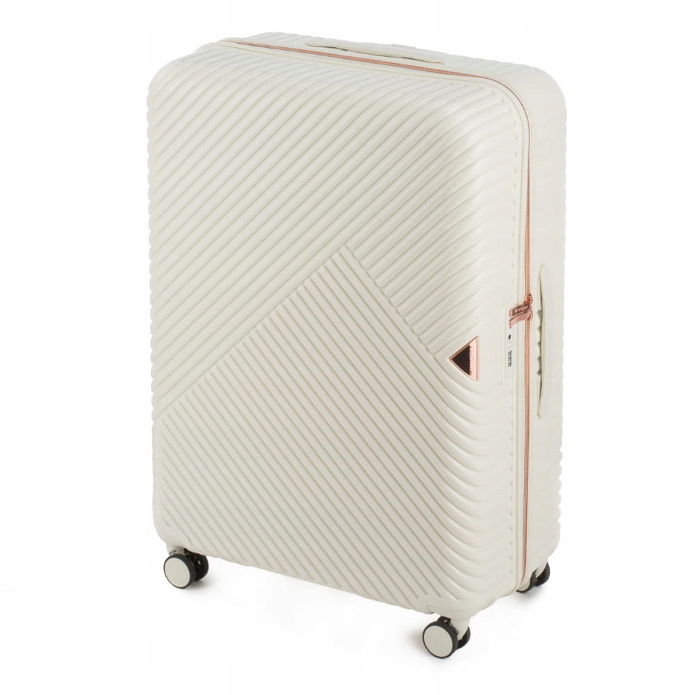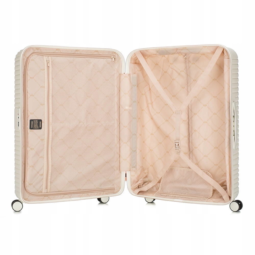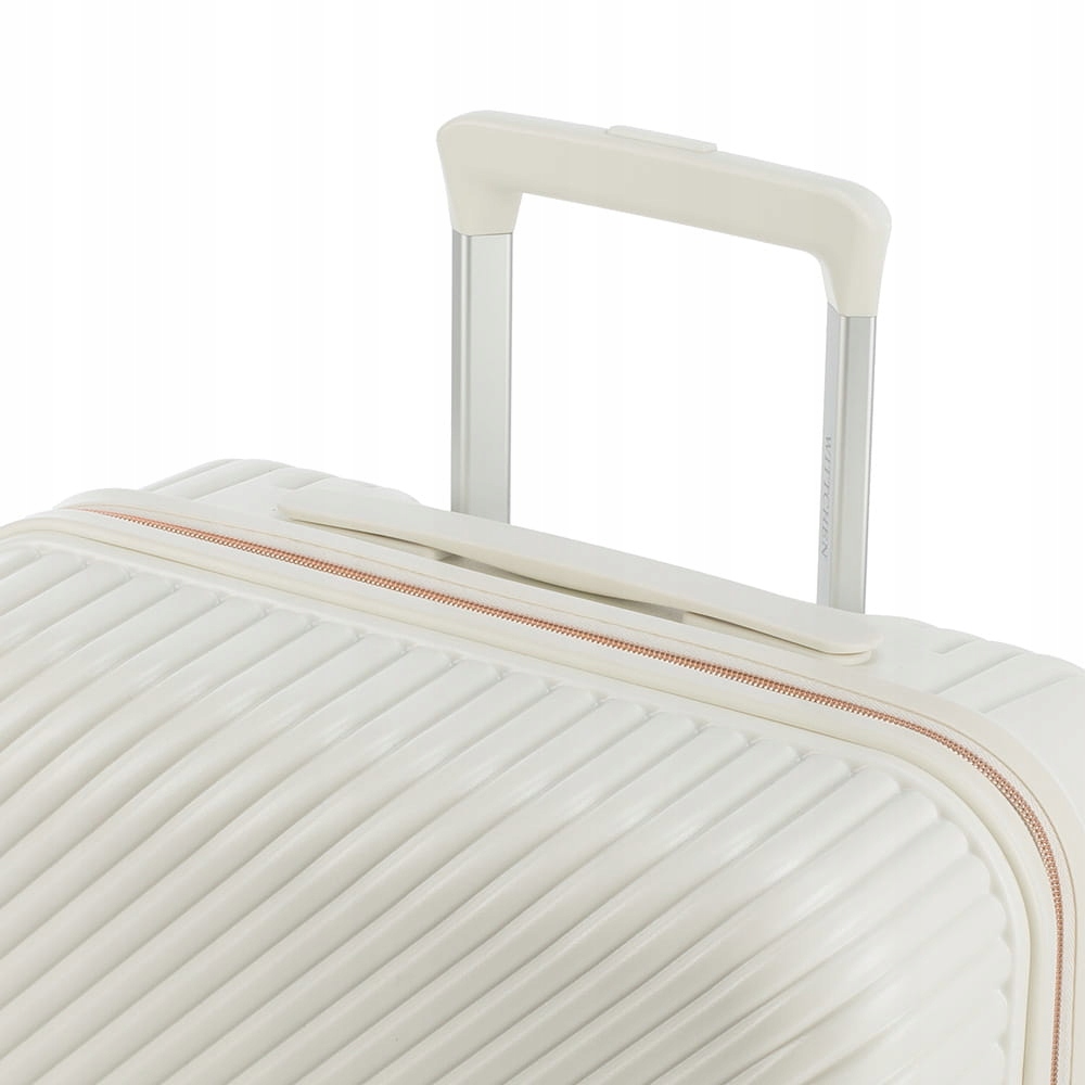 Велика велика WITTCHEN 56-3P-843-88з колекції GL Style білого кольору, виготовлена з полікарбонату з матовим покриттям. Валіза оснащена чотирма подвійними колесами, виготовленими з ABS-пластику і покритими термопластичним покриттям, алюмінієвою, телескопічною ручкою з замком і 2 гумовими, гнучкими ручками. Всередині є відділення з регульованими лямками для захисту багажу від переміщення, відділення на блискавці і 3 кишені на блискавці, в тому числі 2 сітчастих. Безпека у вигляді замка TSA є додатковою перевагою. Завдяки йому під час митного огляду багажу ми маємо гарантію неінвазивного відкриття валізи та її повторного закриття, без пошкодження замка. Валіза легка, але містка і практична.