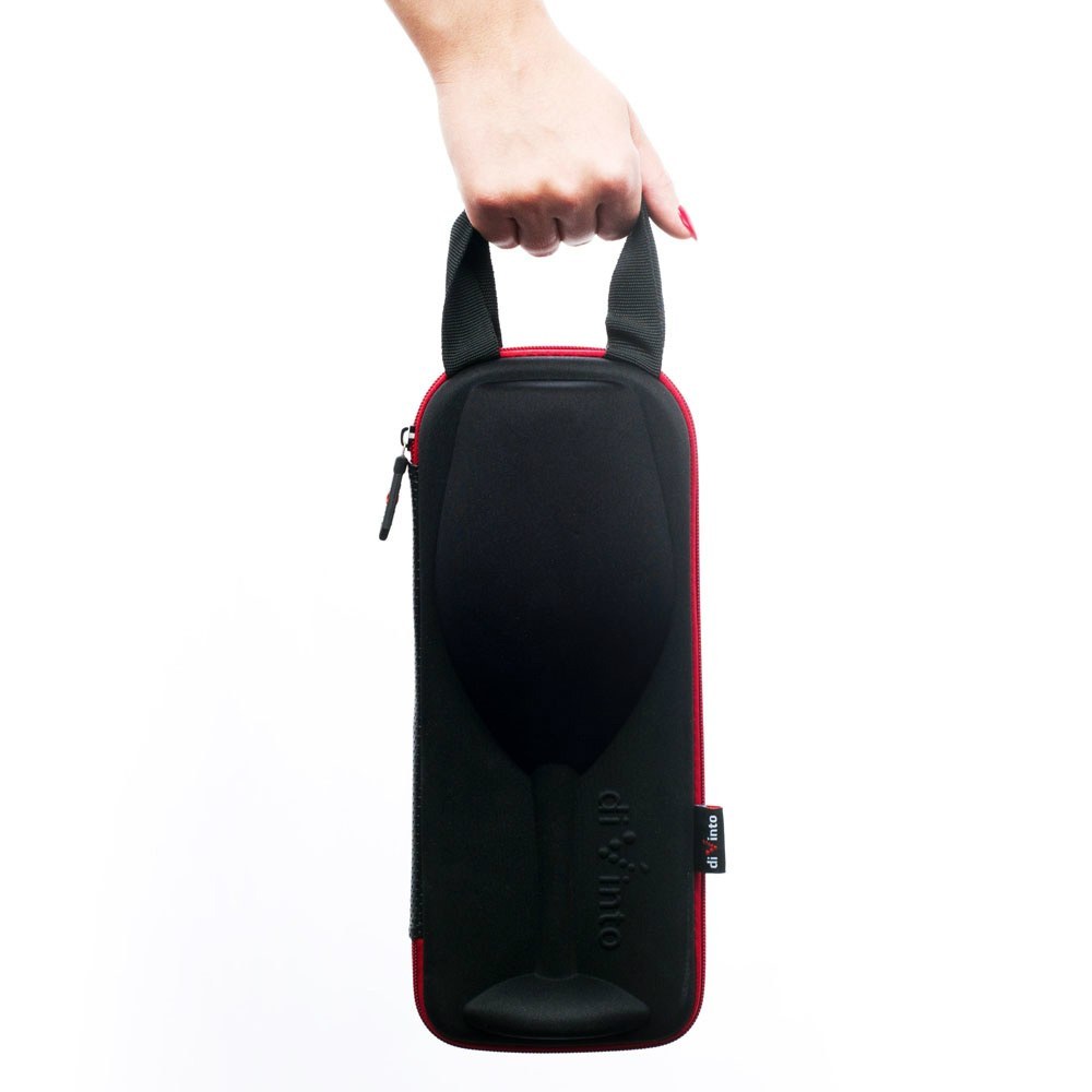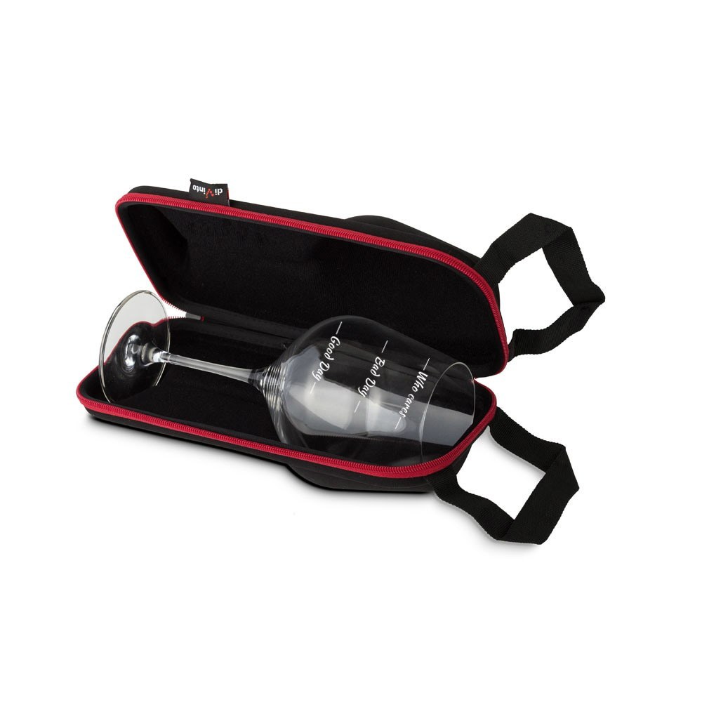 Гігантський скло diVinto Glass упаковано в елегантний чорний футляр. Вони виготовлені з дуже міцного матеріалу, що дозволяє транспортувати скло в ідеальному стані навіть на інший кінець світу.