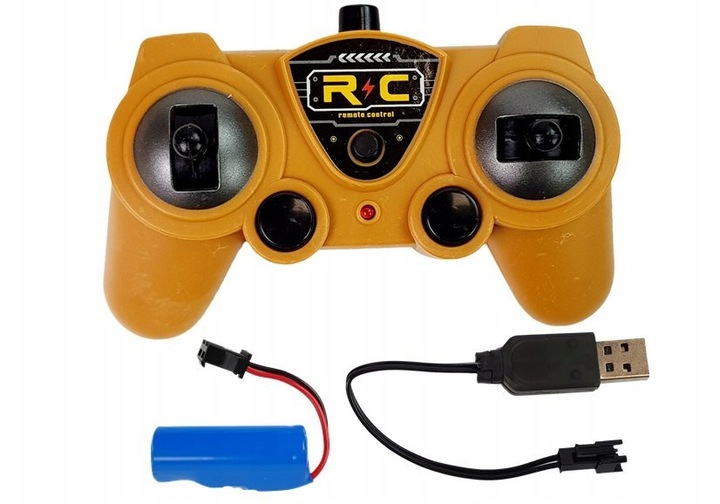 Включений пульт дистанційного керування працює на частоті 2,4 ГГц і має два джойстики, що дозволяють рухатися вперед/назад і праворуч/ліворуч.