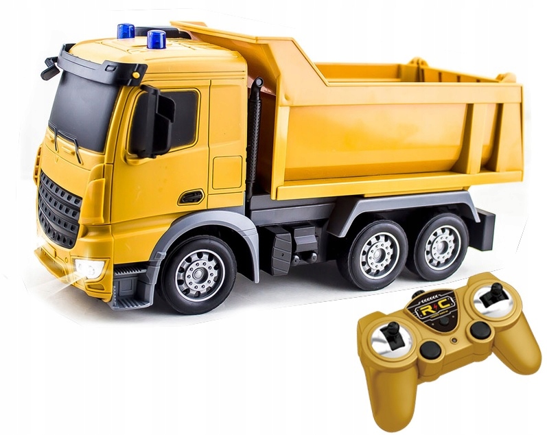 - Жовтий самоскид, що нагадує справжні машини цієї серії. Чорний бампер, маячки на даху та фари, схожі на справжній автомобіль.