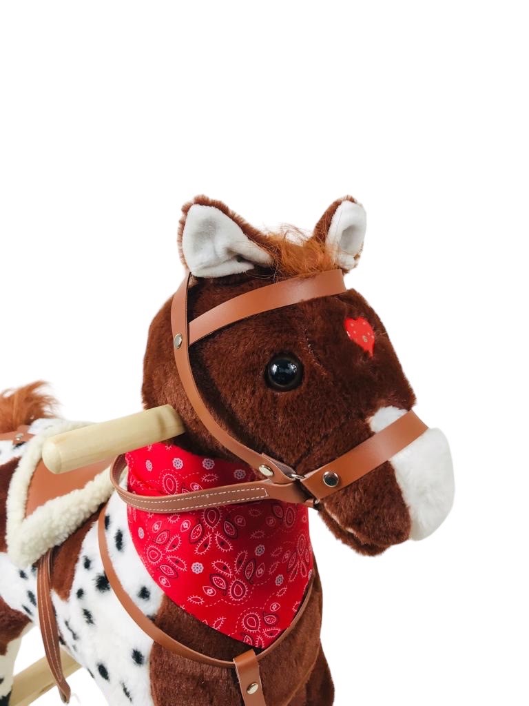 Кінь покритий м'яким, приємним на дотик матеріалу з сідлом, нанесеним на нього.