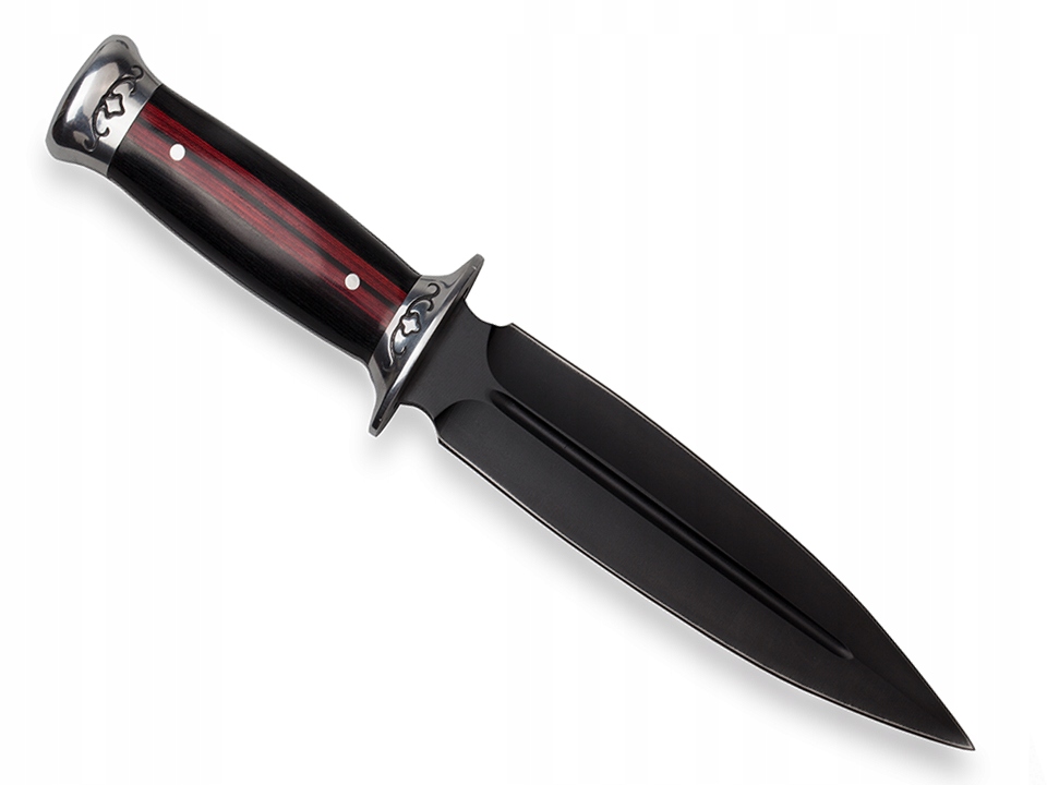 Клинок класичного, масивного кинджального профілю має гладке лезо з обох боків.