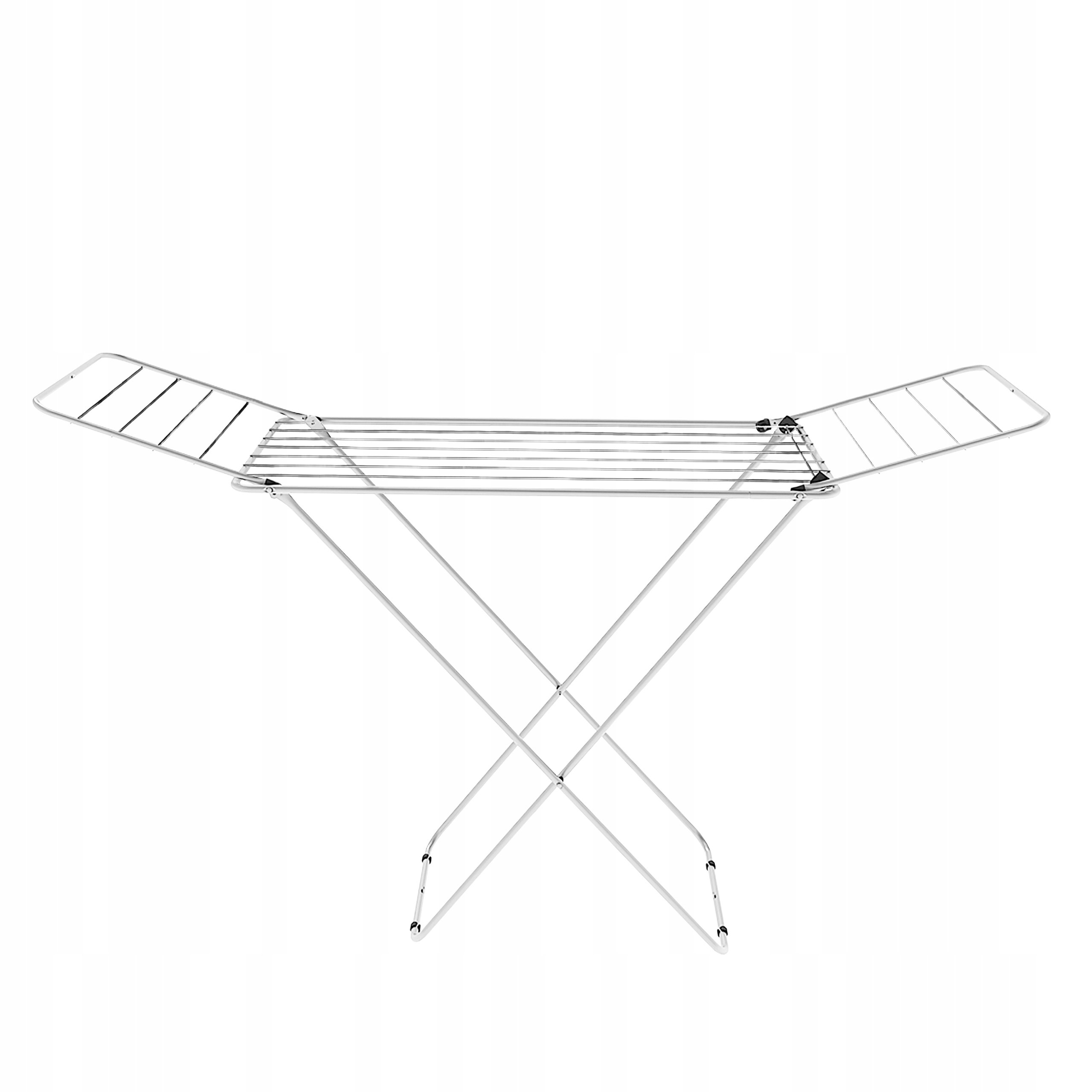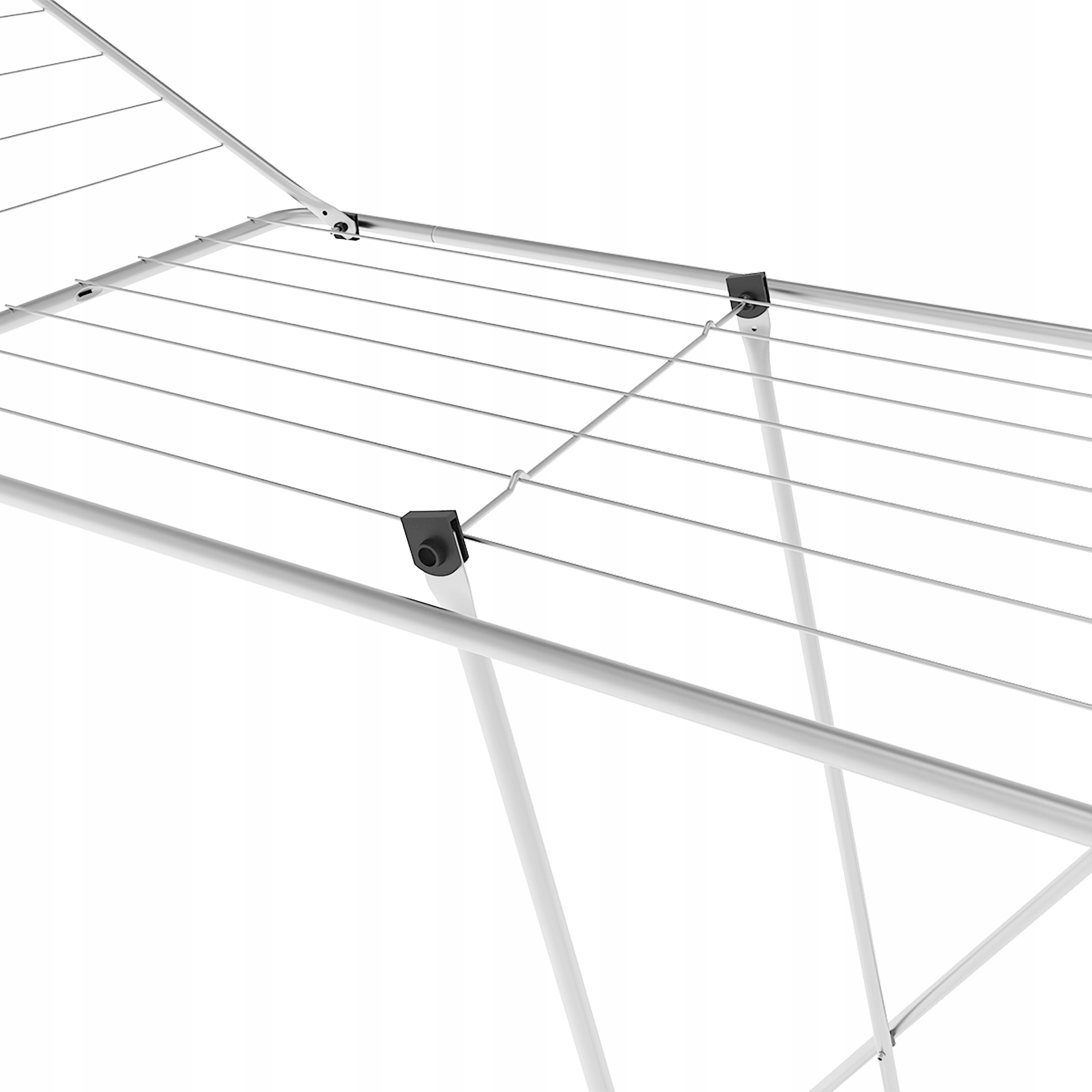 Схрещені ніжки та крильця дозволяють легко та зручно скласти сушарку, коли вона не використовується, вона не займе багато місця, її можна легко сховати в шафу або за дверцята. Завдяки своїй міцній конструкції сушарка залишається стабільною навіть під великою вагою і не складається сама по собі. Він виготовлений з міцної нержавіючої сталі з порошковим покриттям, стійкою до УФ-променів та інших зовнішніх факторів, таких як волога, мороз і вітер. Його можна використовувати як у приміщенні, так і на вулиці. Завдяки використаним матеріалам його надзвичайно легко чистити та не є сприятливим середовищем для розмноження бактерій. Товсті металеві дроти не згинаються під впливом навантаження, а також запобігають утворенню непривабливих складок на частинах одягу. Це значно скорочує процес прасування та економить ваш час та енергію.