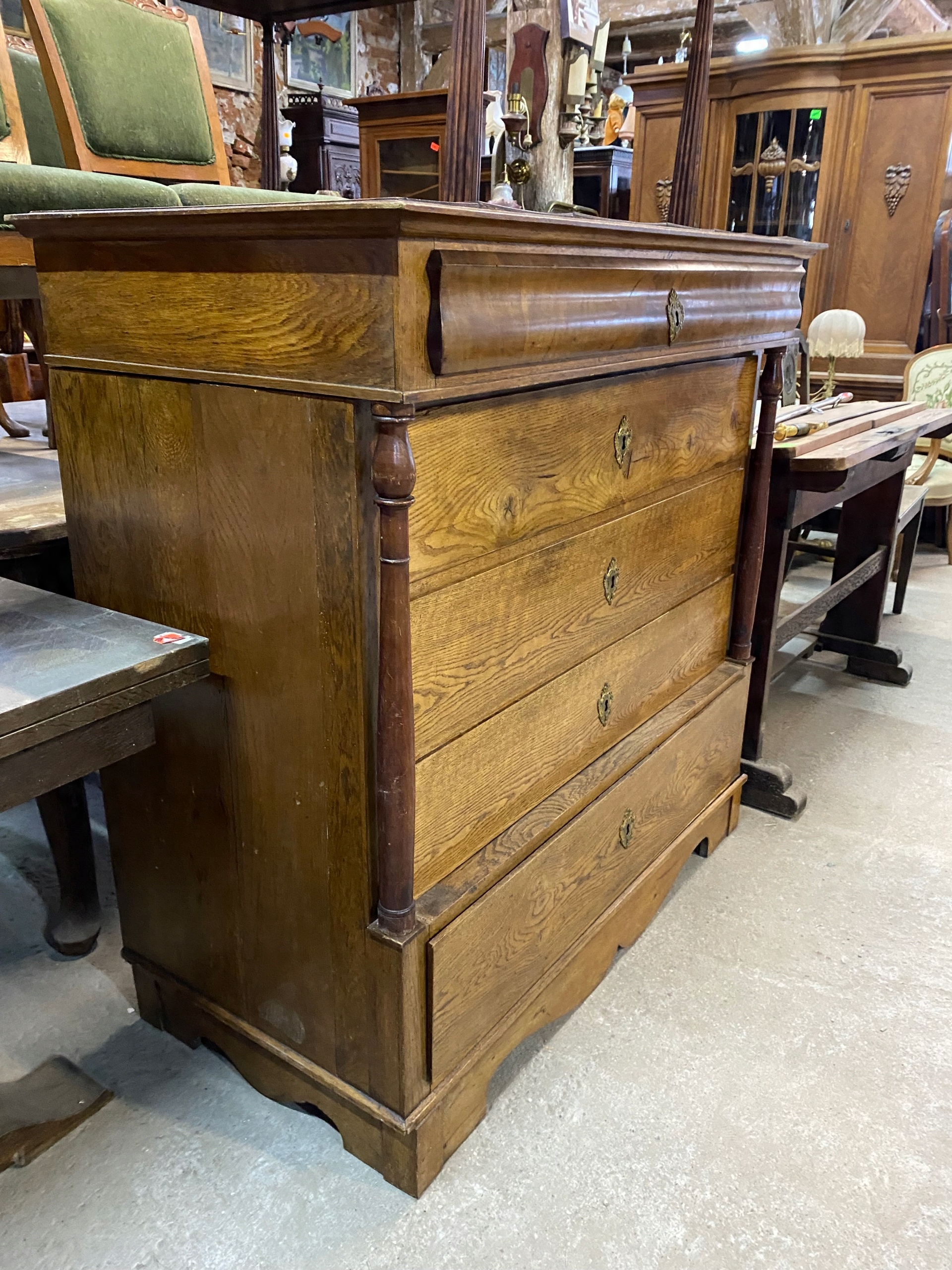 «Великий комод бароко, 18/19 ст., червоне дерево та дуб, 5 ящиків»