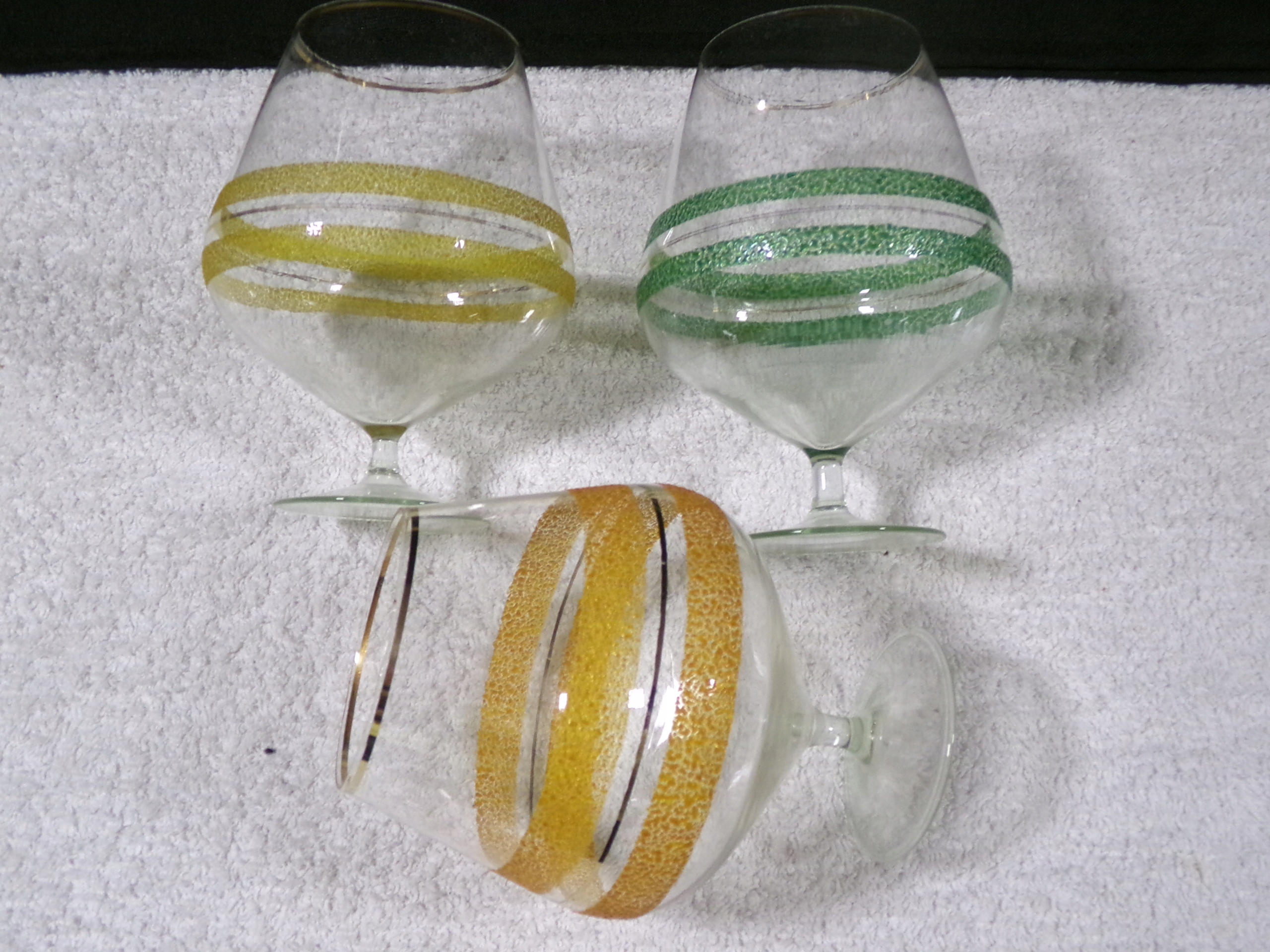 Набір 3 окулярів для коньяку висотою 13,5 см, середній діаметр 6 см, ємність 300 мл, вагою 0,31 кг. Дуже хороший стан збережений, без пошкоджень.