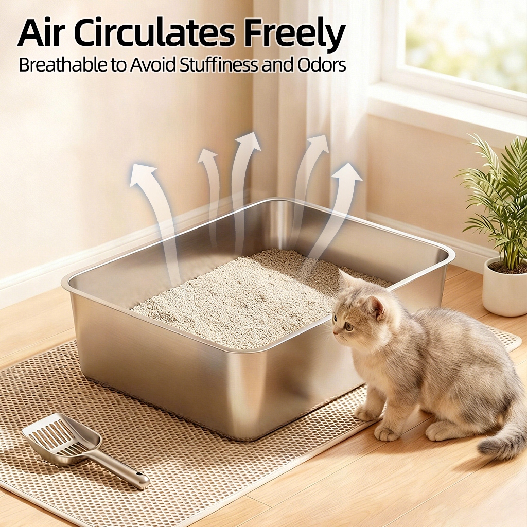 Великий котячий лоток для туалету 60х40 см, міцна нержавіюча сталь, срібло