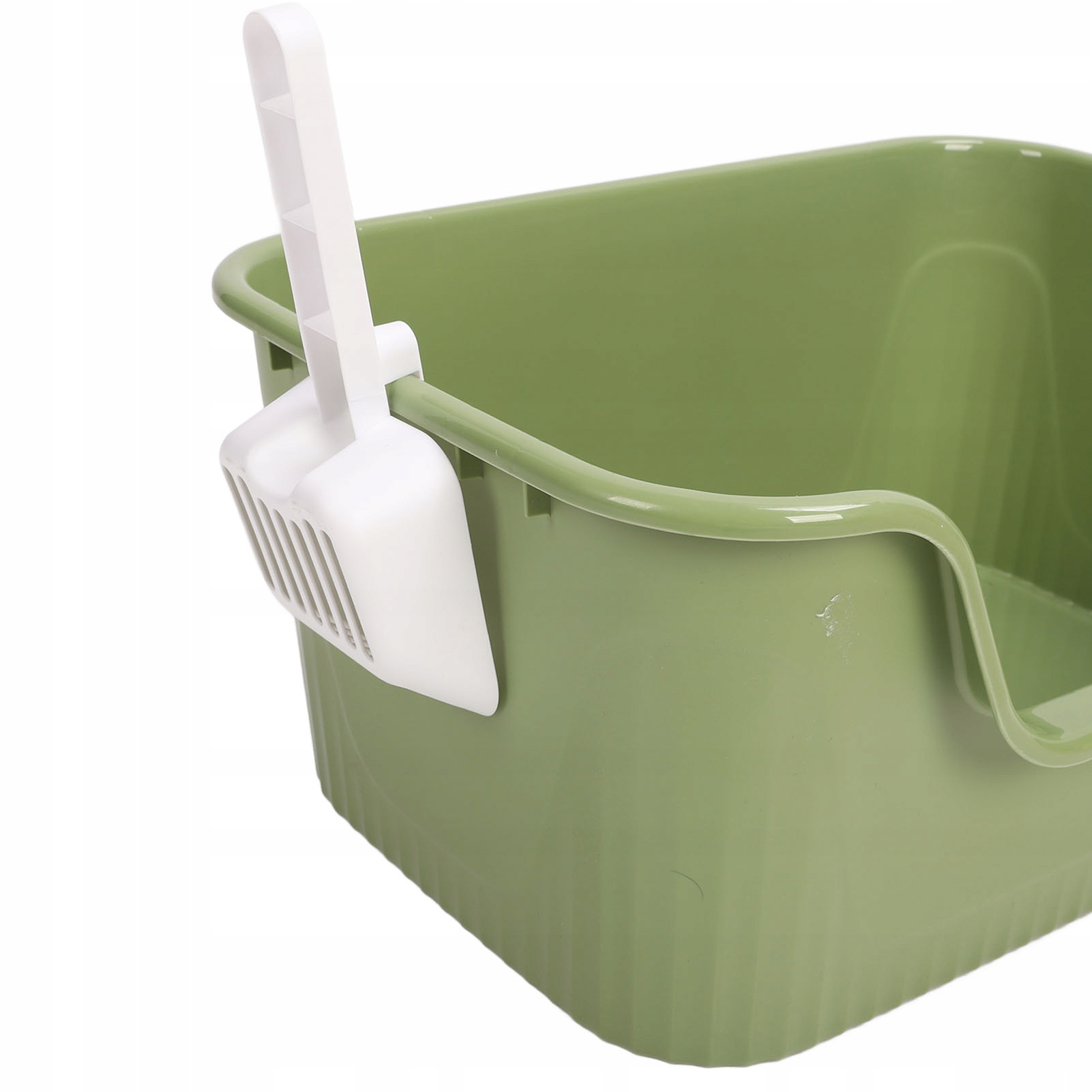 2. Захист від бризок: високі стінки цього відкритого котячого лотка ефективно запобігають розкиданню сміття за межі ящика, а цільна конструкція позбавляє від клопоту з піском і сечею.
