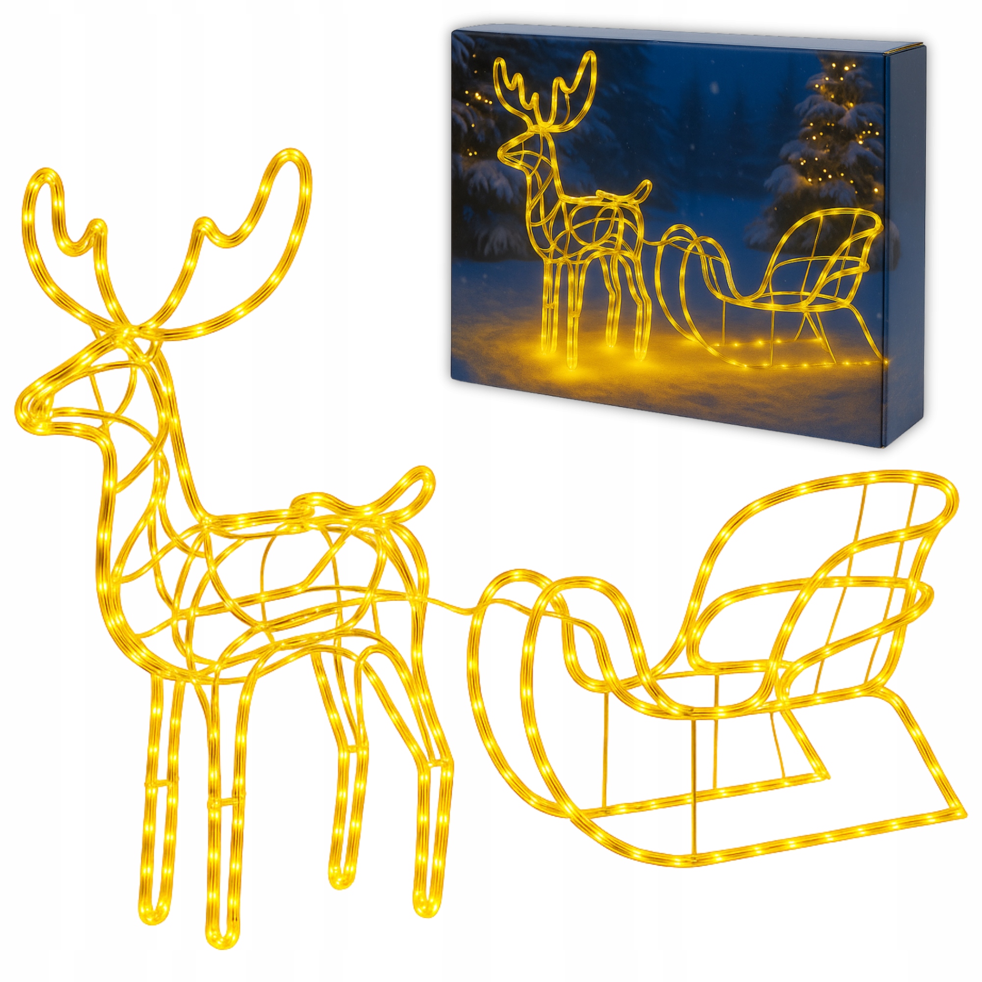 ВЕЛИКИЙ КРАСИВИЙ СЯЮЧИЙ СВІТЛОДІОДНИЙ ОЛЕНЬ З САНЯМИ XXL 120см ТЕПЛИЙ БІЛИЙ + FLASH