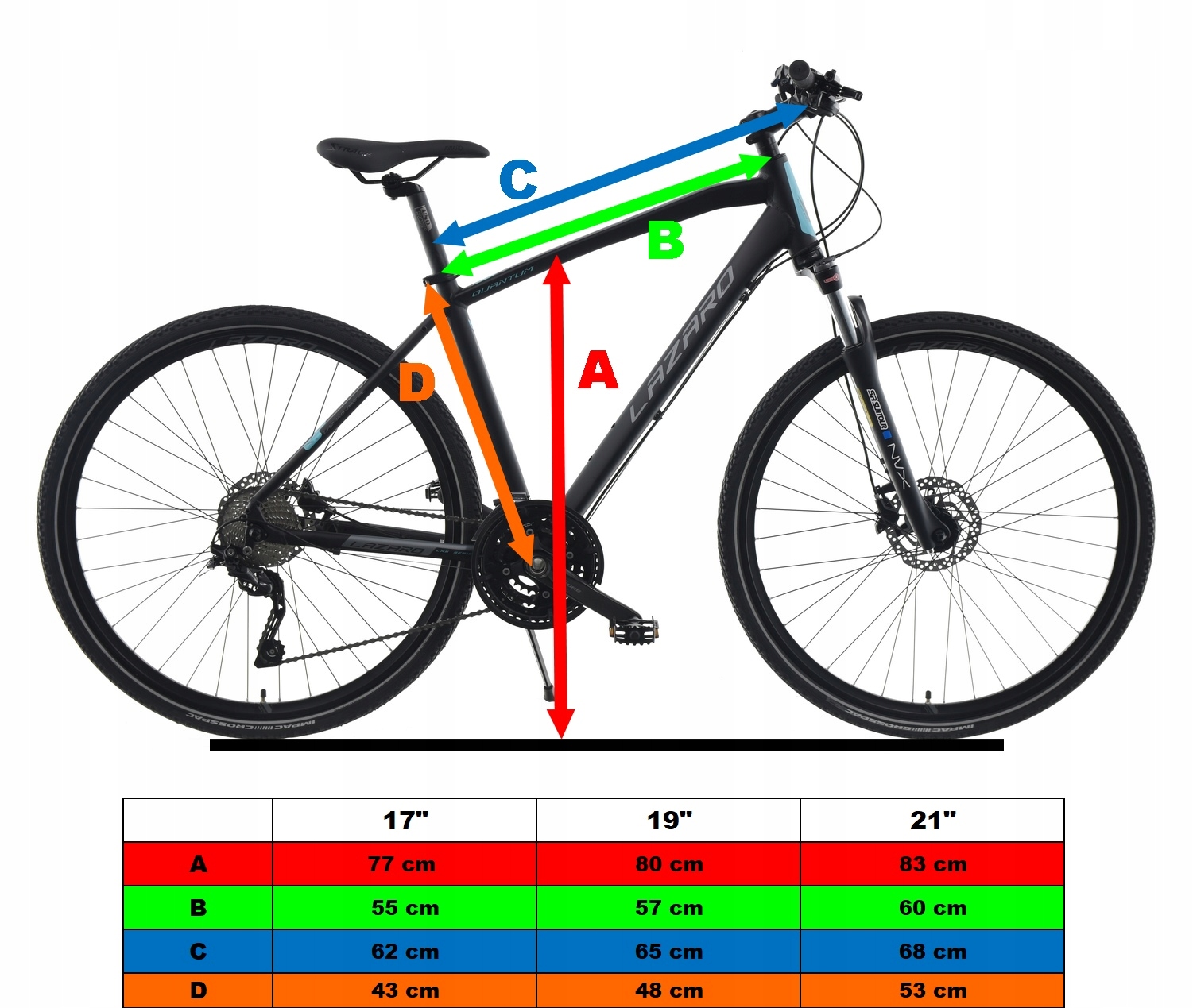 - Рамка: LAZARO AL-6061 алюміній, трубка гідроформування, наклейки під фарбу, розмір 17", 19" або 21"