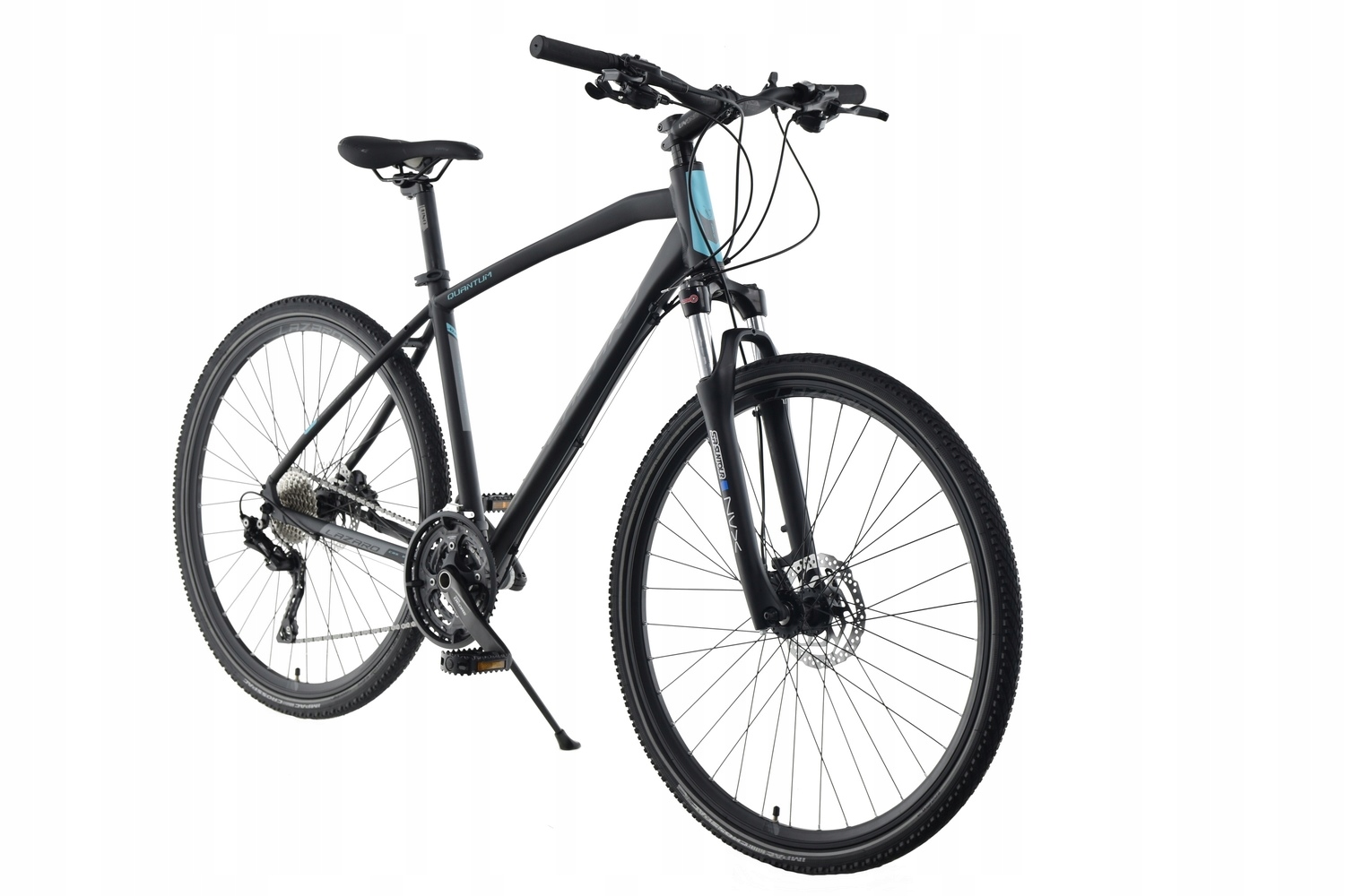 Велосипед Lazaro QUANTUM — це кросова модель, тобто поєднання універсальності та геометрії трекінгового велосипеда та більш агресивного стилю гірських велосипедів. Це буде хорошим вибором для людей, які цінують універсальність і комфортність пересування в міських умовах і поїздках за місто по грунтових трасах. Легка і міцна гідроформована алюмінієва рама з геометрією, що дозволяє прийняти зручне положення. Великі алюмінієві колеса діаметром 28 дюймів на міцних двокамерних ободах KANDS TECH (з високим конусом 25 мм!) і втулках LRO з картриджними підшипниками. Шини з дорожнім і гравійним протектором добре працюватимуть на асфальтованих поверхнях і бічних дорогах. Рама має різьблення для кріплення аксесуарів, таких як: бризковики, пляшка з водою, стійка. Фірмові компоненти приводу від Shimano забезпечать тривалу та безвідмовну роботу та безпроблемне перемикання передач. Ефективні та міцні гідравлічні дискові гальма Shimano дають вам відчуття безпеки та контролю під час подорожі. Якщо ви шукаєте універсальне обладнання з репутацією і, крім того, дуже хорошим співвідношенням ціна-якість, кросовий велосипед Lazaro - один з варіантів для вас.