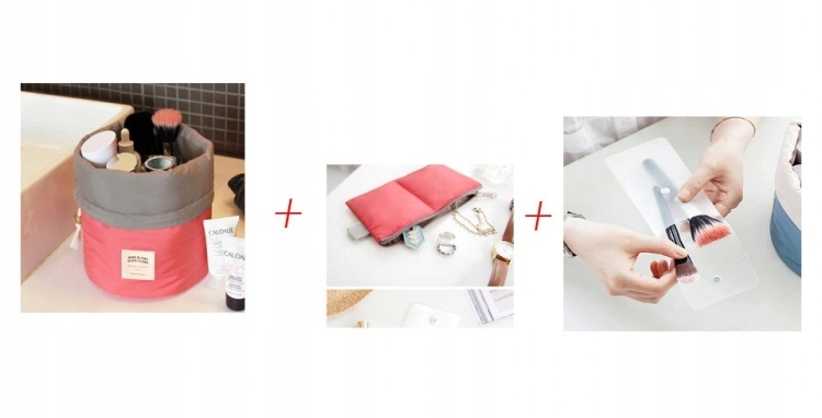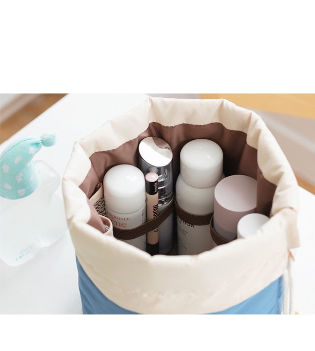 Виготовлений з поліестеру з наповнювачем усередині, який захищає косметику від пошкоджень. Краї косметички можна загорнути, щоб косметика була помітнішою.