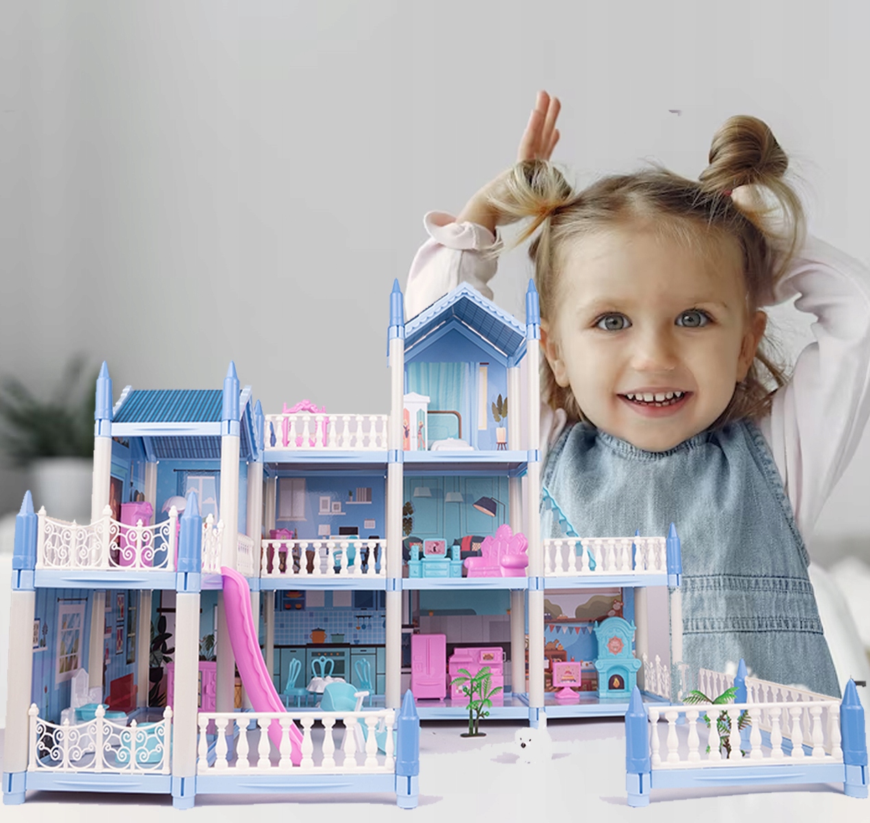 ✅ Велика казкова вілла для ляльок з меблями та ігровим майданчиком