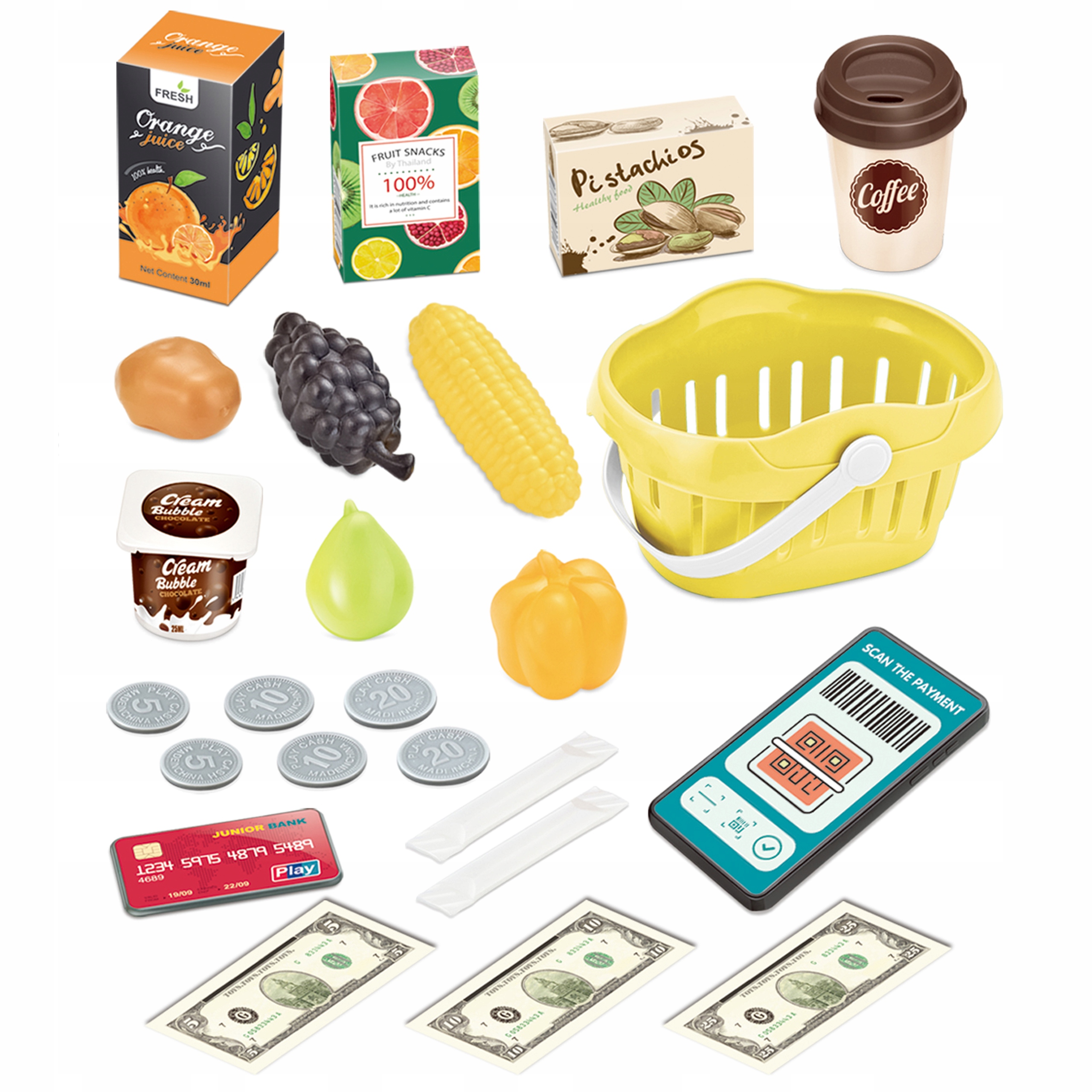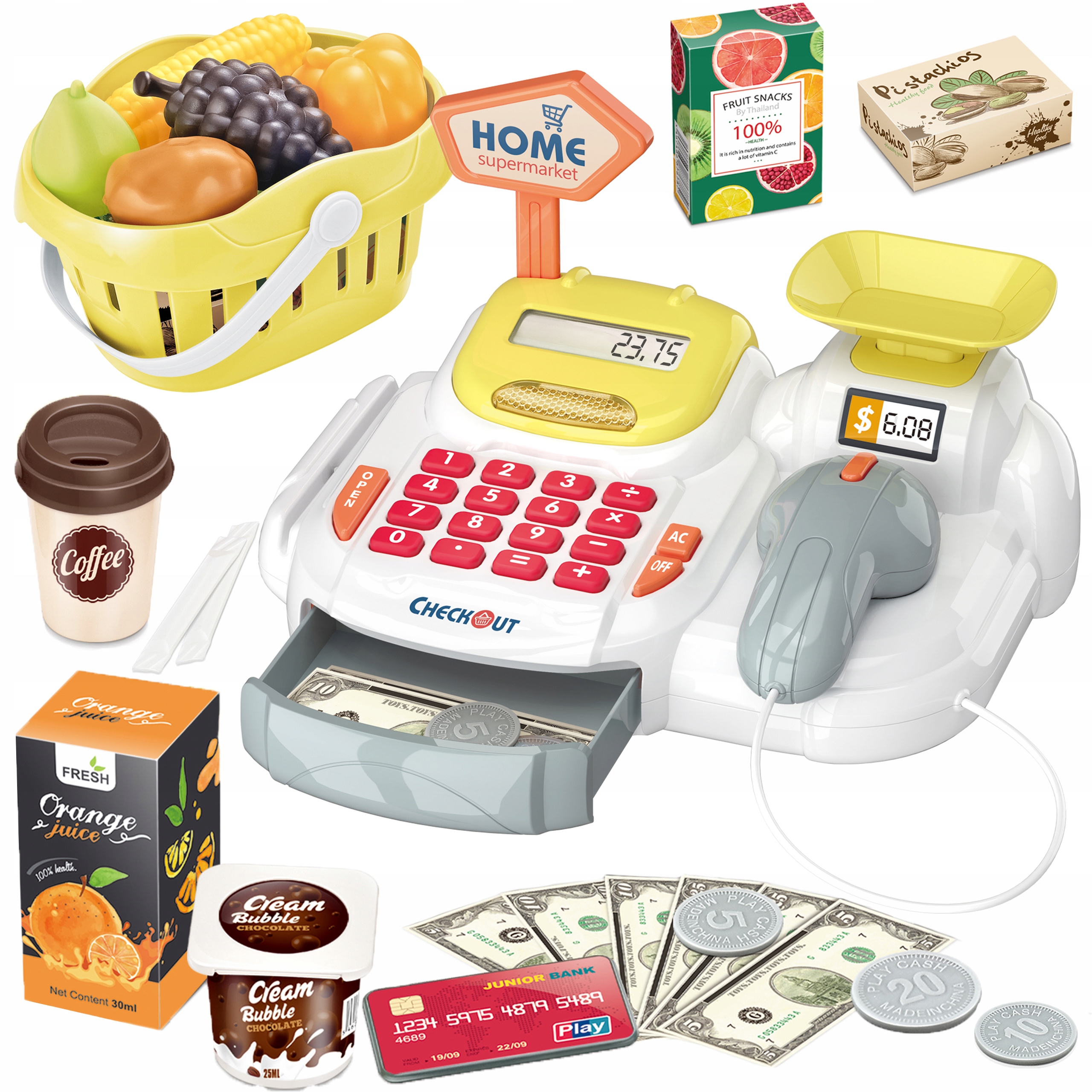 Електронний касовий апарат для дітей + кошик + 36 аксесуарів!