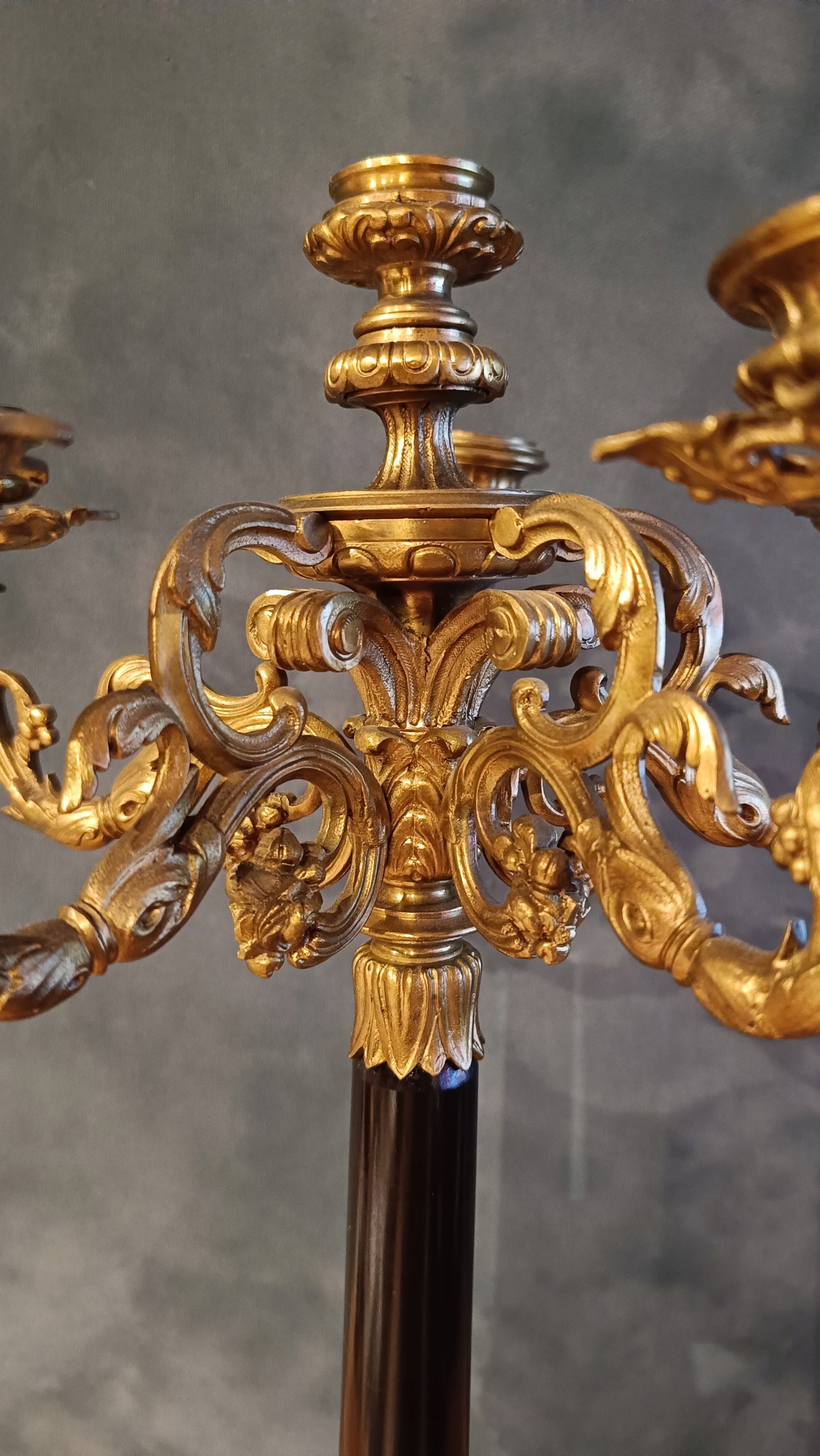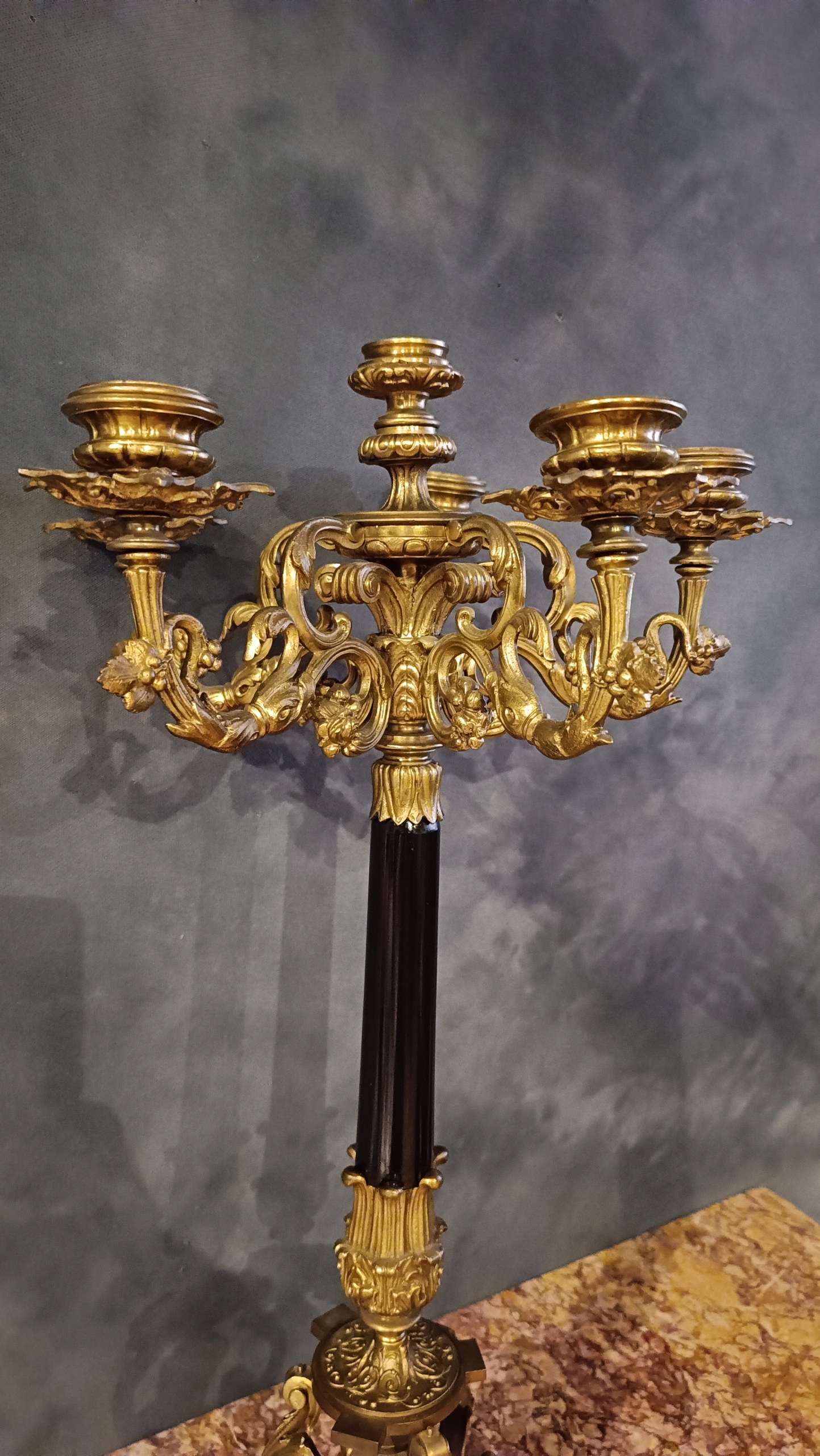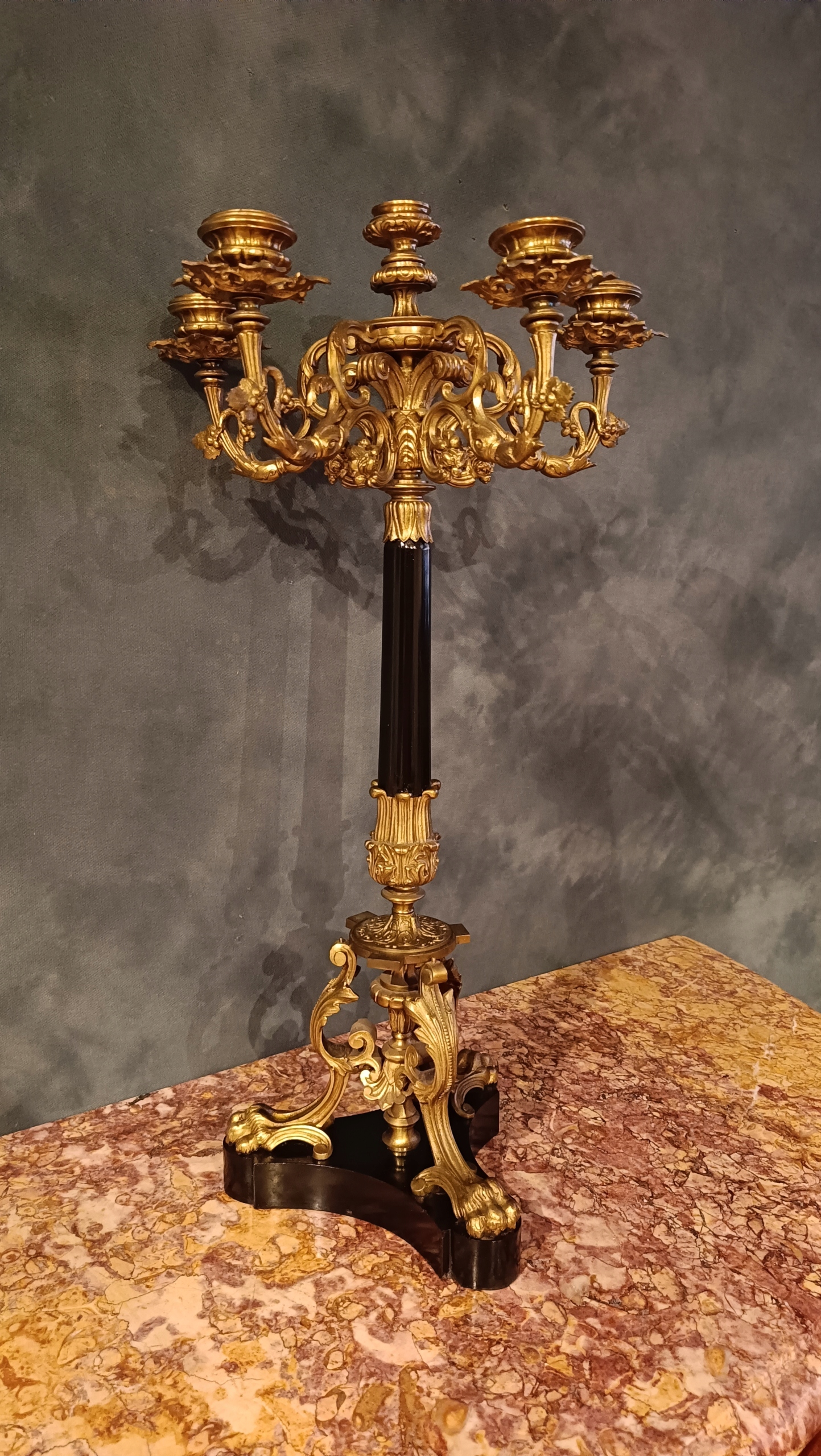 Великий масивний власник свічок для 6 свічок з бронзи 19 століття.