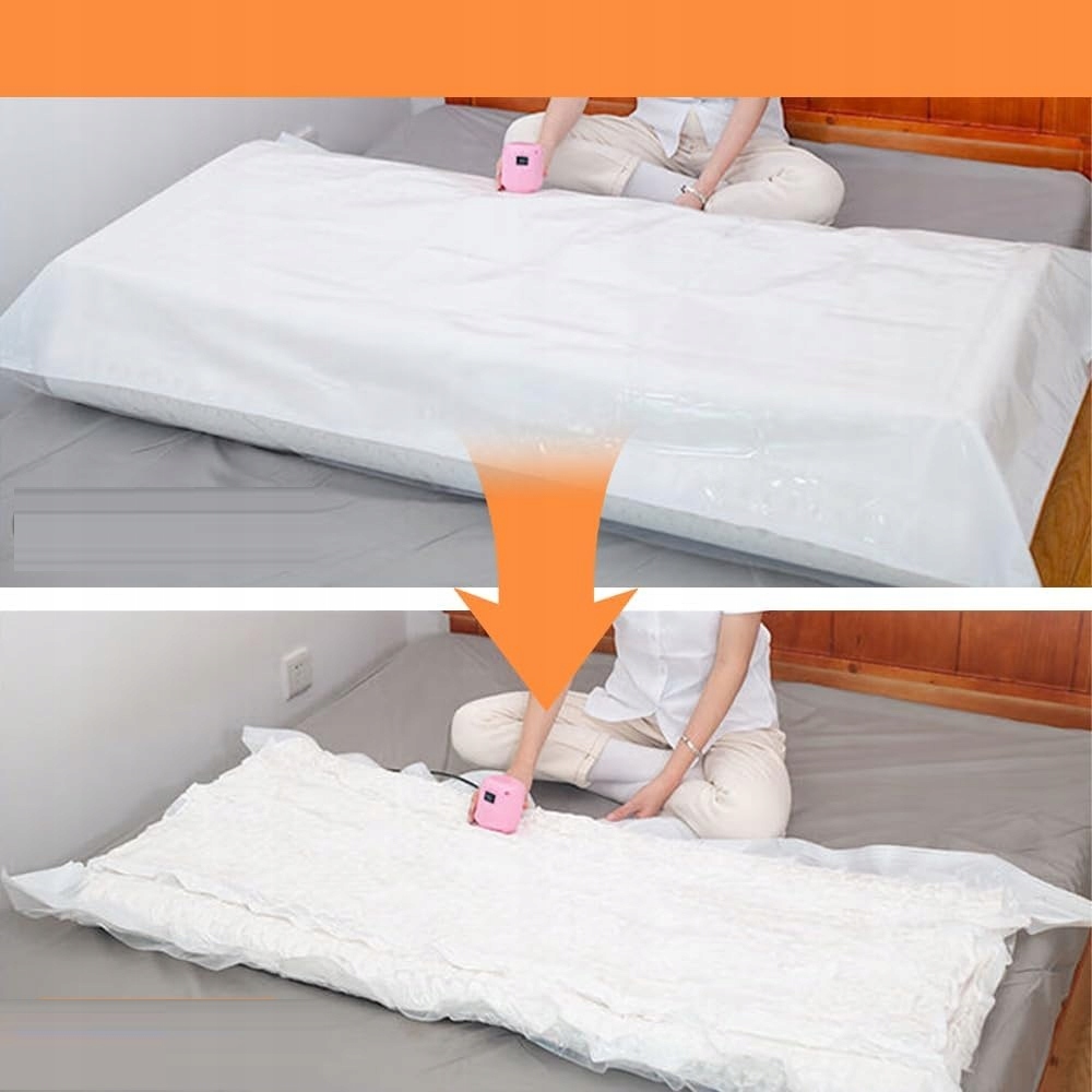 Подаруйте собі комфорт та заощадження місця завдяки великій вакуумній сумці на матраці ! Це ідеальне рішення для зберігання та транспортування матраців, ковдр, постільної білизни або сезонного одягу. Завдяки вакуумній технології вона значно зменшує об'єм зберігаються об'єктів, захищаючи їх від вологи, пилу та бруду.