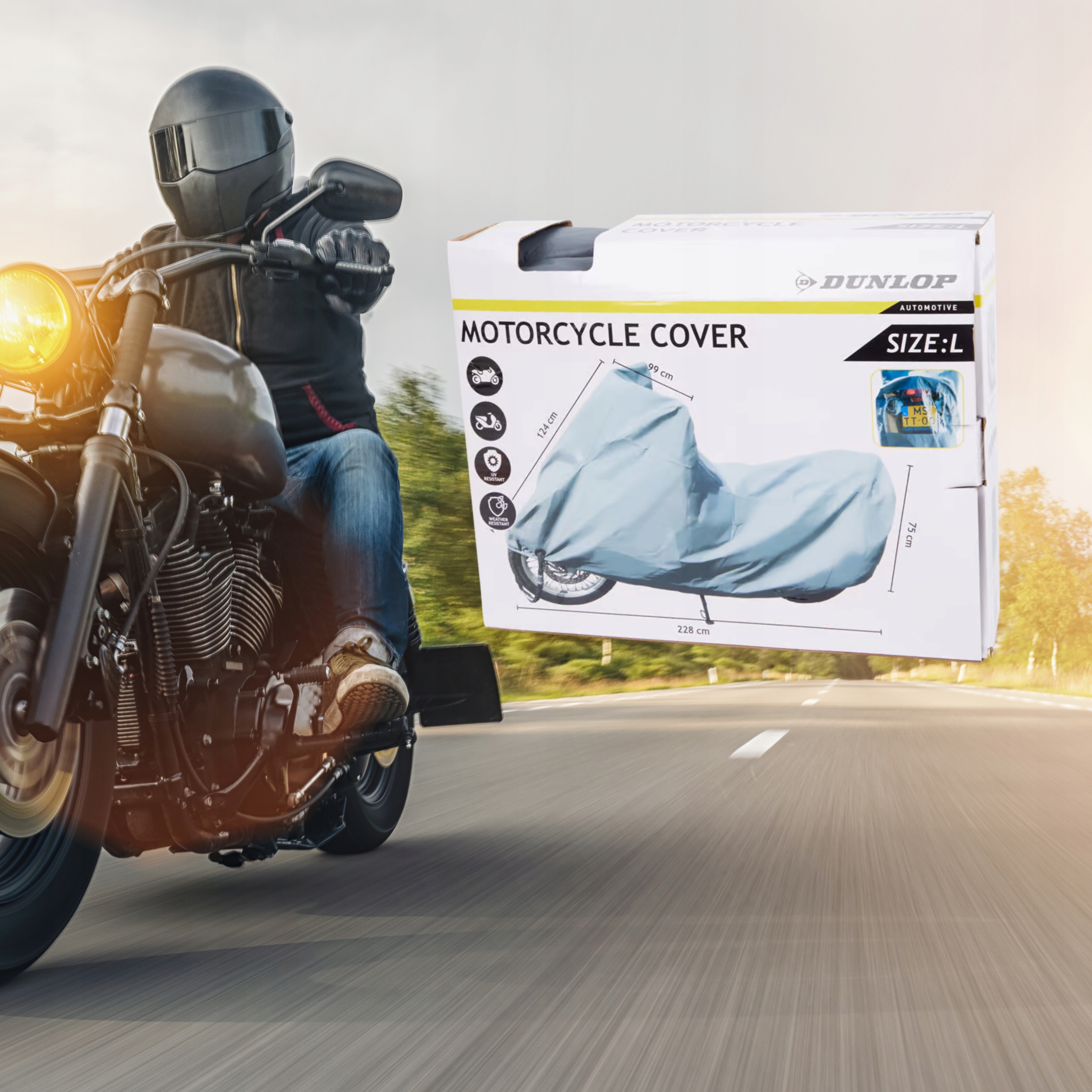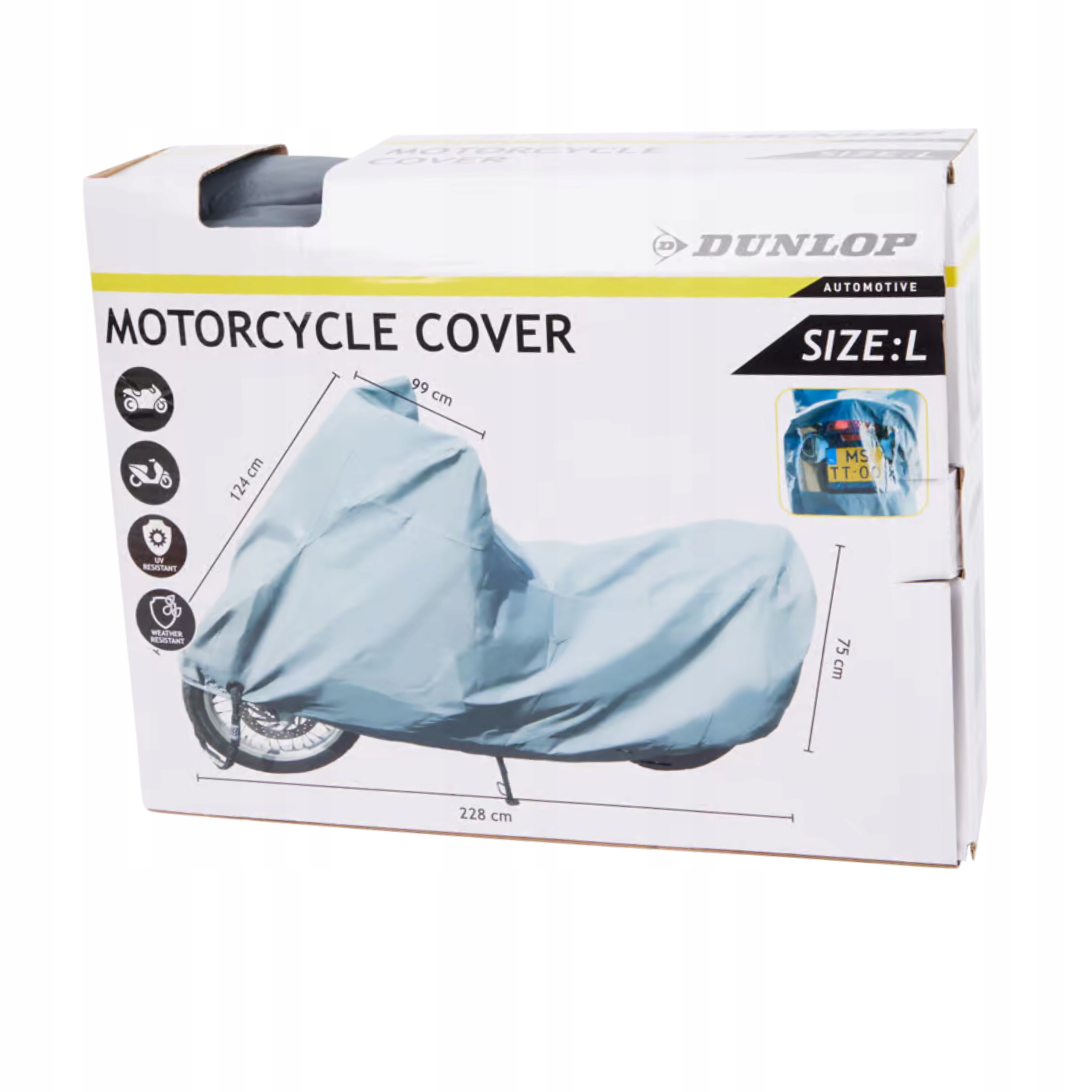 Захистіть свій мотоцикл або скутер від несприятливих погодних умов за допомогою міцного чохла Dunlop.