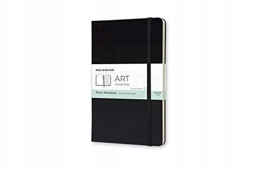 Великий нотний зошит Moleskine у картонній палітурці з обкладинкою Moleskine із закругленими кутами та еластичним корпусом. 192 безкислотні сторінки скріплені нитками, а зошит містить розширюваний внутрішній тримач для нотаток із картону та тканини. У кожному журналі Moleskine є стрічка-заповнювач і знімна картка з історією Moleskines. У кожному 2-сторінковому розвороті одна сторінка залишається порожньою для запису композитором. Також до великого зошита входить музична лінійка.