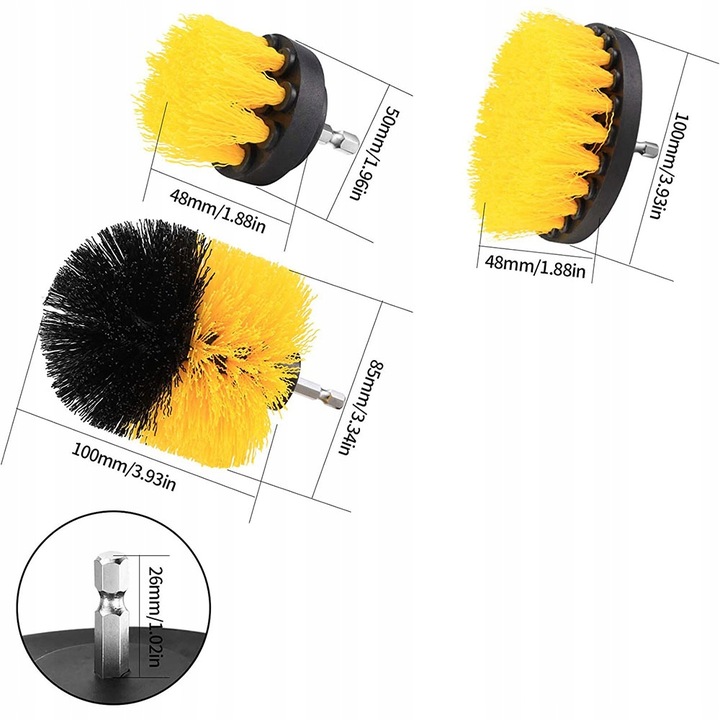 ✅Набір щіток - це продукт, який ідеально підійде для вашого будинку, гаража та майстерні. Це практичний спосіб позбутися різного роду забруднень практично з будь-якої поверхні. Використання викрутки значно скоротить час, необхідний для боротьби навіть з найсильнішим, засохлим брудом. Завдяки різноманітному набору ви легко підберете щітку для конкретної поверхні. Вони оснащені універсальним шестигранним адаптером, що робить їх придатними практично для кожної викрутки.