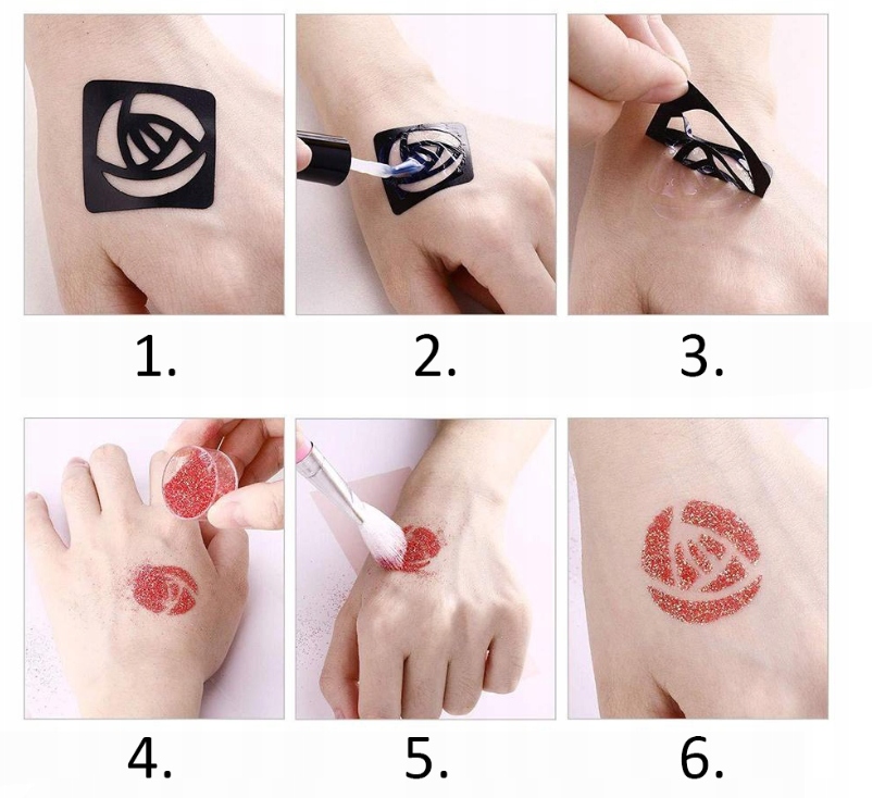 🎨 Легке застосування: Татуювання прості у використанні - просто нанесіть шаблон, посипте блиском, а потім обережно відштовхується, щоб отримати ефективний малюнок на шкірі.