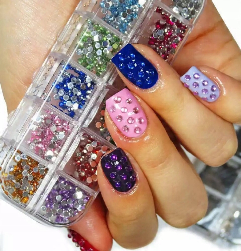 Завдяки стразами, можна збагатити та урізноманітнити свій манікюр/педикюр. Грайте з кольорами та милуйтеся блискучими кристалами на своїх нігтях!