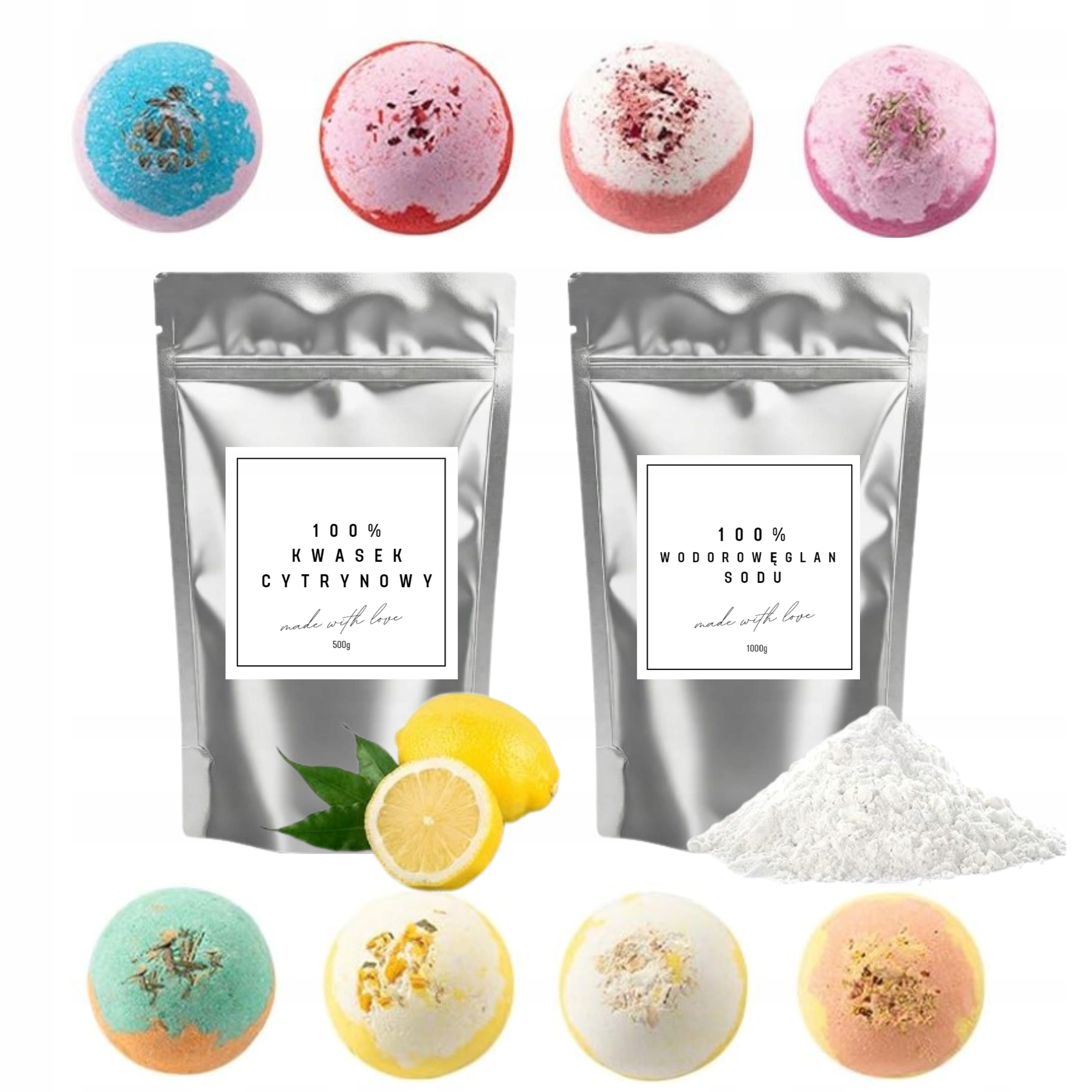 У наборі ви знайдете всі інгредієнти та інструменти , необхідні для створення унікальних кульових кульок - від основних інгредієнтів, таких як лимонна кислота та гідрогенбонат натрію, до силікону з трьома різними формулами, набором дворів, овочів овочів та декорацій. набір складається так, щоб ви могли негайно розпочати пригоду зі створенням!