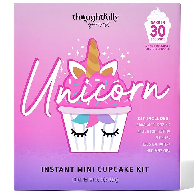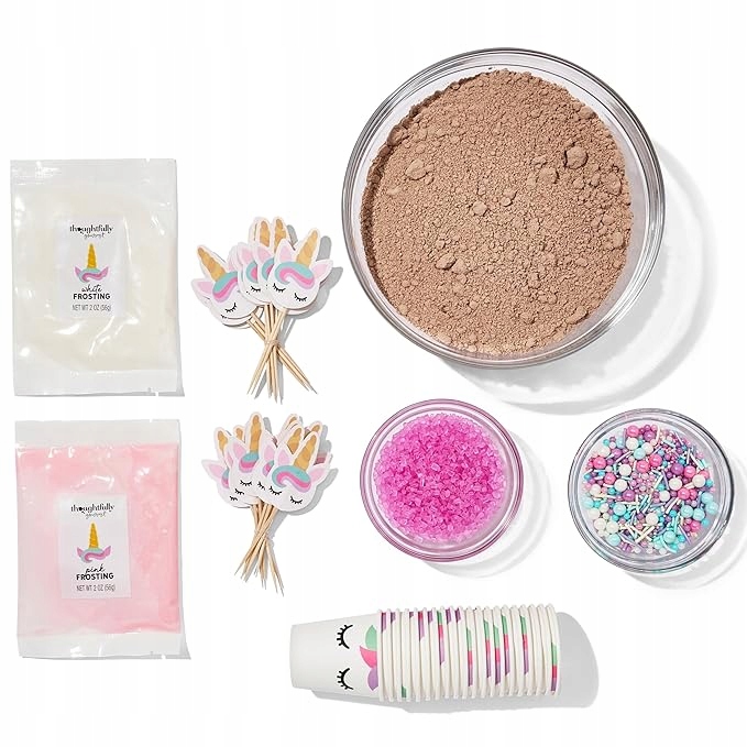 - УСЕ-В-ОДНОМУ - Суміш для 20 шоколадних кексів, паперових стаканчиків із зображенням єдинорога та декорацій для кексів із зображенням єдинорога