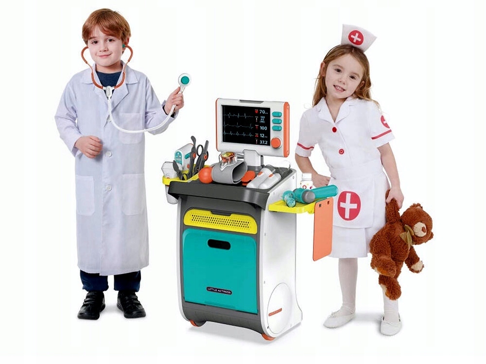 Повна аптечка для ляльки чи ведмедика дозволить вашій дитині відкрити лікарські таємниці. Кожна дитина мала контакт з лікарем і більшою чи меншою мірою згадує його з теплотою – звичайно, це залежить від ситуації. Але для дітей, які бачать своє майбутнє в медичному обслуговуванні, це ідеальний набір.