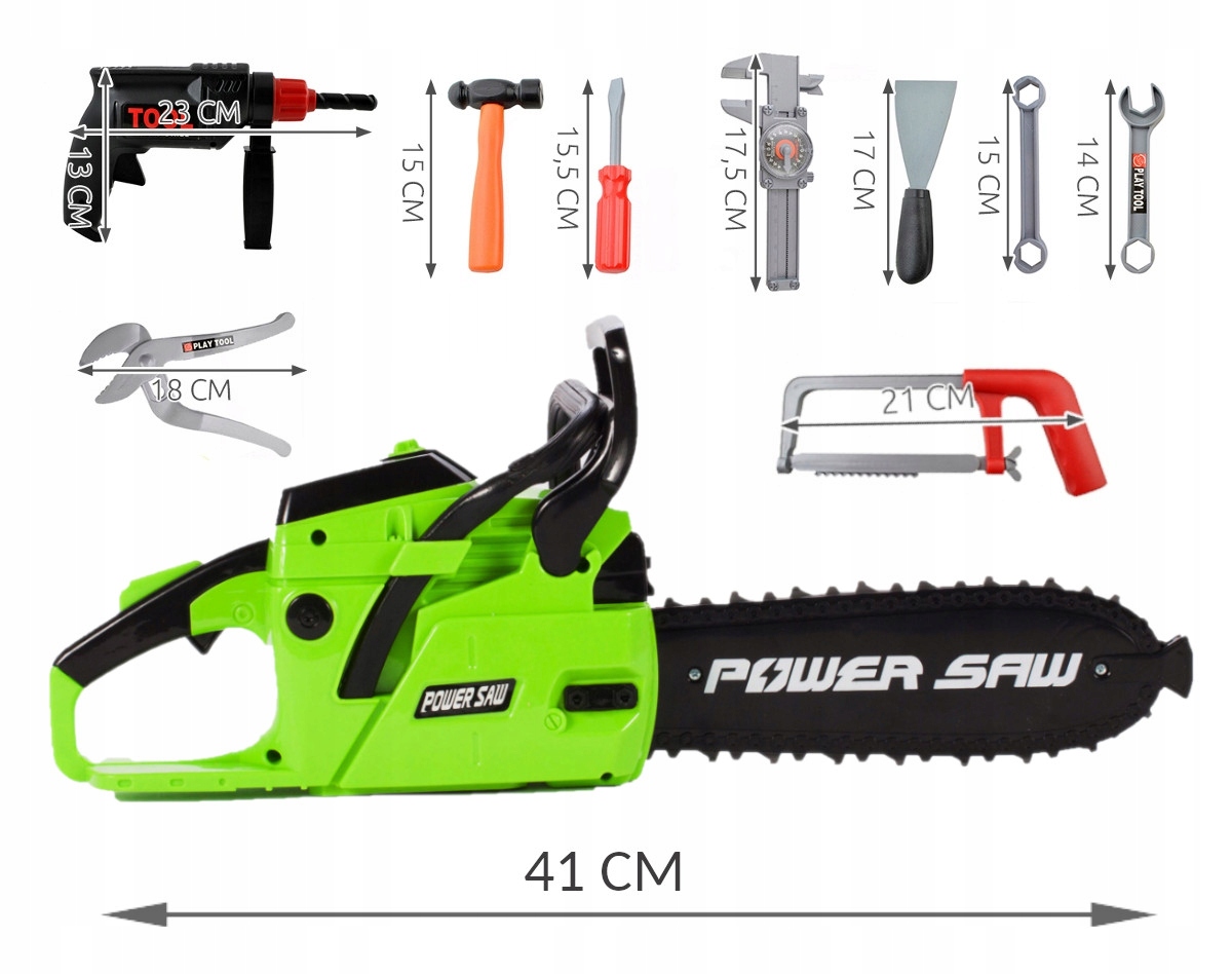 - Реалістична іграшкова бензопила має гумовий ланцюг, що обертається,що забезпечує безпечну гру. Ідеальна іграшка для маленьких любителів саморобки, вона розвиває уяву та виконує навчальну роль. Пила видаєреалістичні звуки.