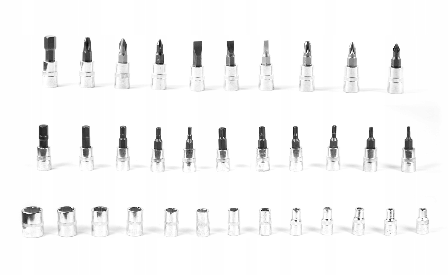 ◾ Універсальність: Ви знайдете тут і клавіші розетки, і шматочки в різних формах (наприклад, Torx), що робить набір ідеальним для різних робіт.