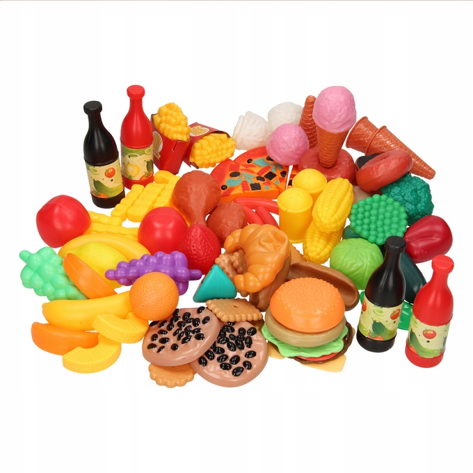 Набір містить надзвичайно "смачну" та барвисту колекцію імітації їжі. Набір складається з елементів 90 . Велика кількість продуктів дозволяє їм практичне використання, , а також підвищує привабливість , що забезпечує цікаву забаву в покупках або підготовці їжі . реалістичні мініатюри були зроблені точно, і їх яскраві та соковиті кольори впливають на естетичні цінності, і, таким чином, привертають увагу дитини та заохочують розваги . Елементи - це невеликі розміри і займаються мало місця , щоб ви могли легко їх зберігати . Набір легкий і зручний , що змушує дитину легко взяти його з собою до дитячого садка, колеги, саду чи в подорож.