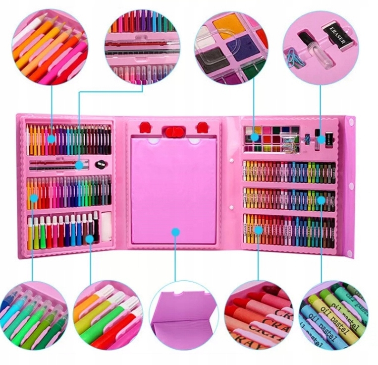 A Ідея подарунка для дівчини завдяки якісним матеріалам, багатій палітрі кольорів, різноманітному вибору олівців та фломастерів та чудовій валізці.