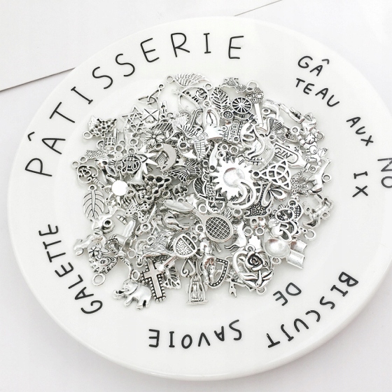 ВЕЛИКИЙ НАБІР ПІДВІСОК ШАРМС 100 шт., МЕТАЛЕВІ СРІБЛИСТІ DIY РУЧНОГО ВИРОБЛЕННЯ
