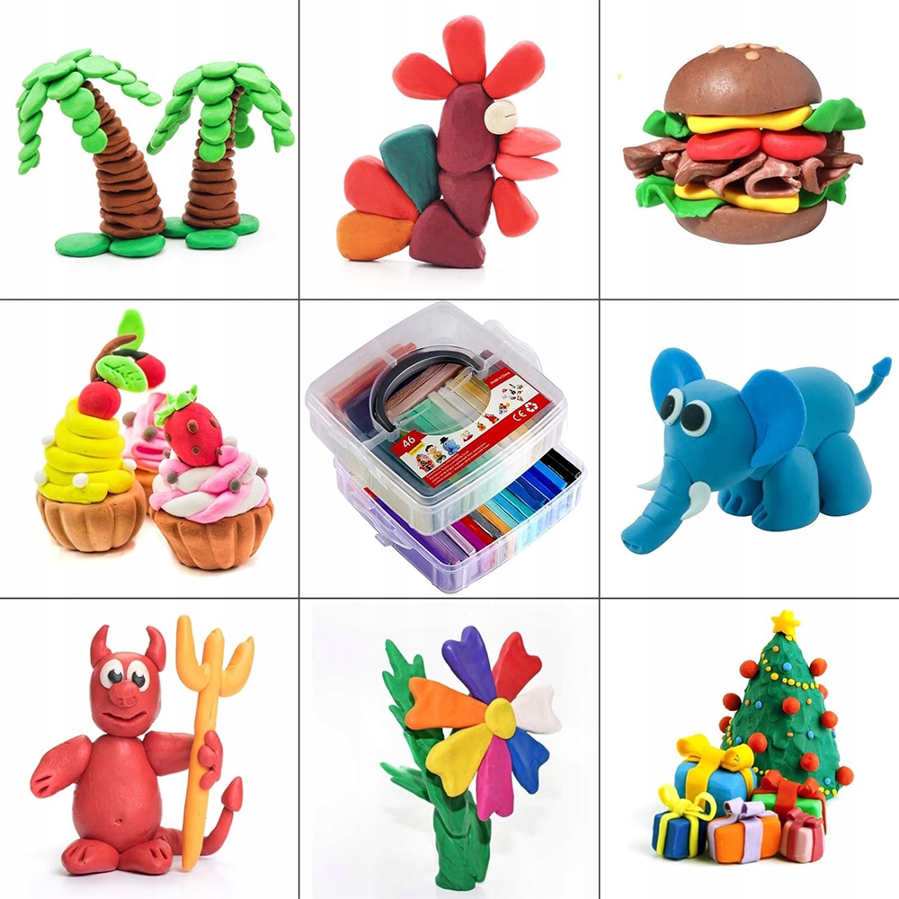 - ✴️Набір кольорової глини з 46 предметів: 46 частин кольорової глини для ліплення в печі (28 г/шт.), 1 подвійне зберігання коробка, 5 інструментів для моделювання та 40 аксесуарів для ювелірних виробів зручно зберігати в симпатичній прозорій пластиковій коробці для зберігання.