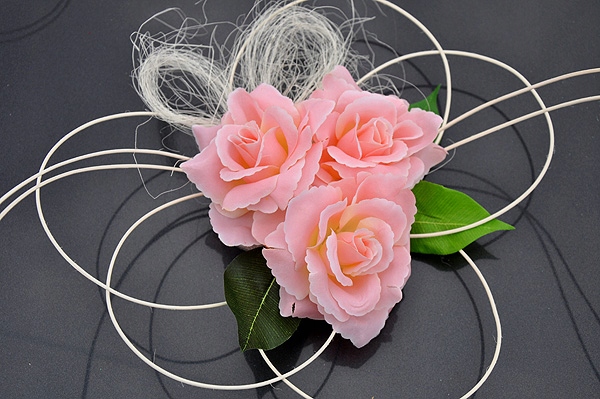 - дуже великий вінок (приблизно 150 см) з ротанга, п'яти великих троянд, сизалю, перлів і листя