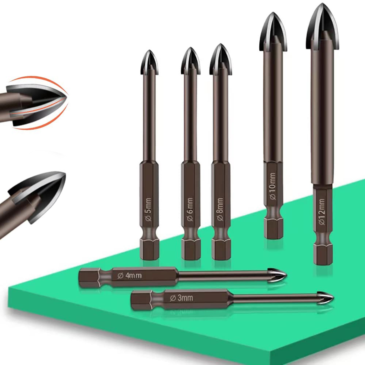 【Задоволення всіх ваших потреб】: набір включає 1 набір свердел (3 мм, 4 мм, 5 мм, 6 мм, 8 мм, 10 мм і 12 мм). 7 розмірів свердел для плитки задовольнять ваші потреби для різних застосувань свердління, допомагаючи почати з найменшого свердла та поступово збільшувати розмір.