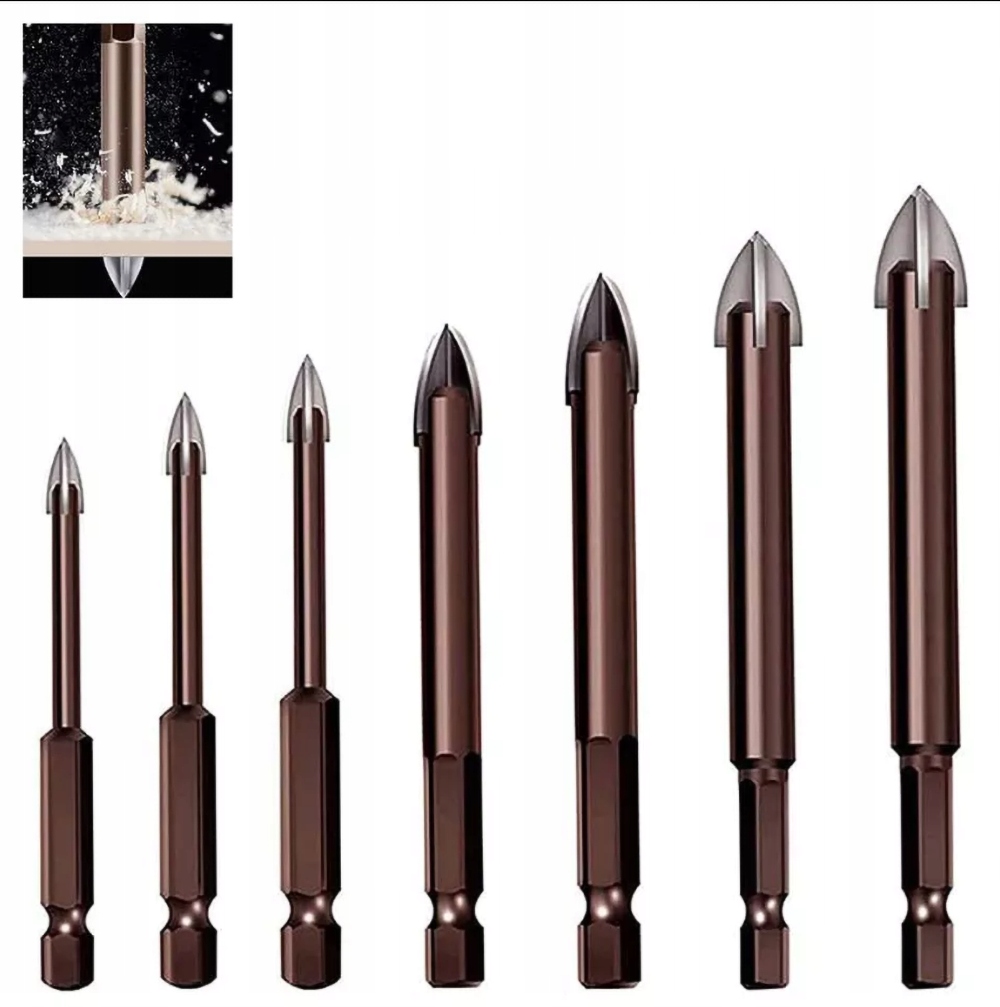 【Конструкція хрестовини】: завдяки гострому свердлу та конструкції хрестовини опір різанню низький, а швидкість відкриття висока. Легко налаштувати. Завдяки свердлу для плитки всі отвори дуже точні та гладкі. Різьба допомагає свердлу ефективно видаляти сміття під час високошвидкісного обертання.