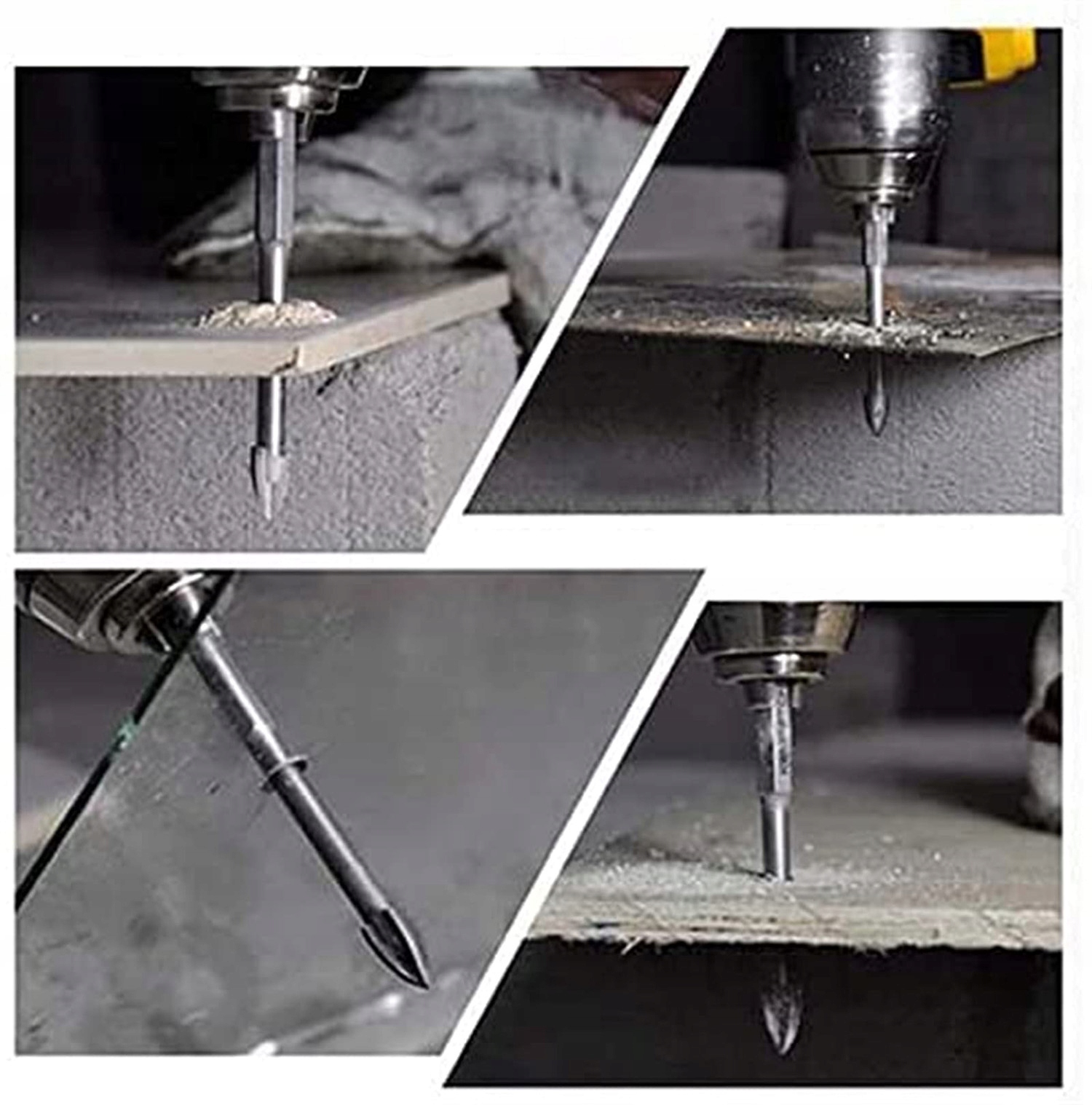 【Широкі області застосування】: цей набір свердел ідеально підходить для свердління всіх типів матеріалів, включаючи керамічну плитку, бетон, цеглу, дерево, пластик, скло, кам’яну кладку та багато іншого. Примітка. Під час свердління твердих матеріалів (скло, керамограніт, мармур або граніт) використовуйте воду для змащування.